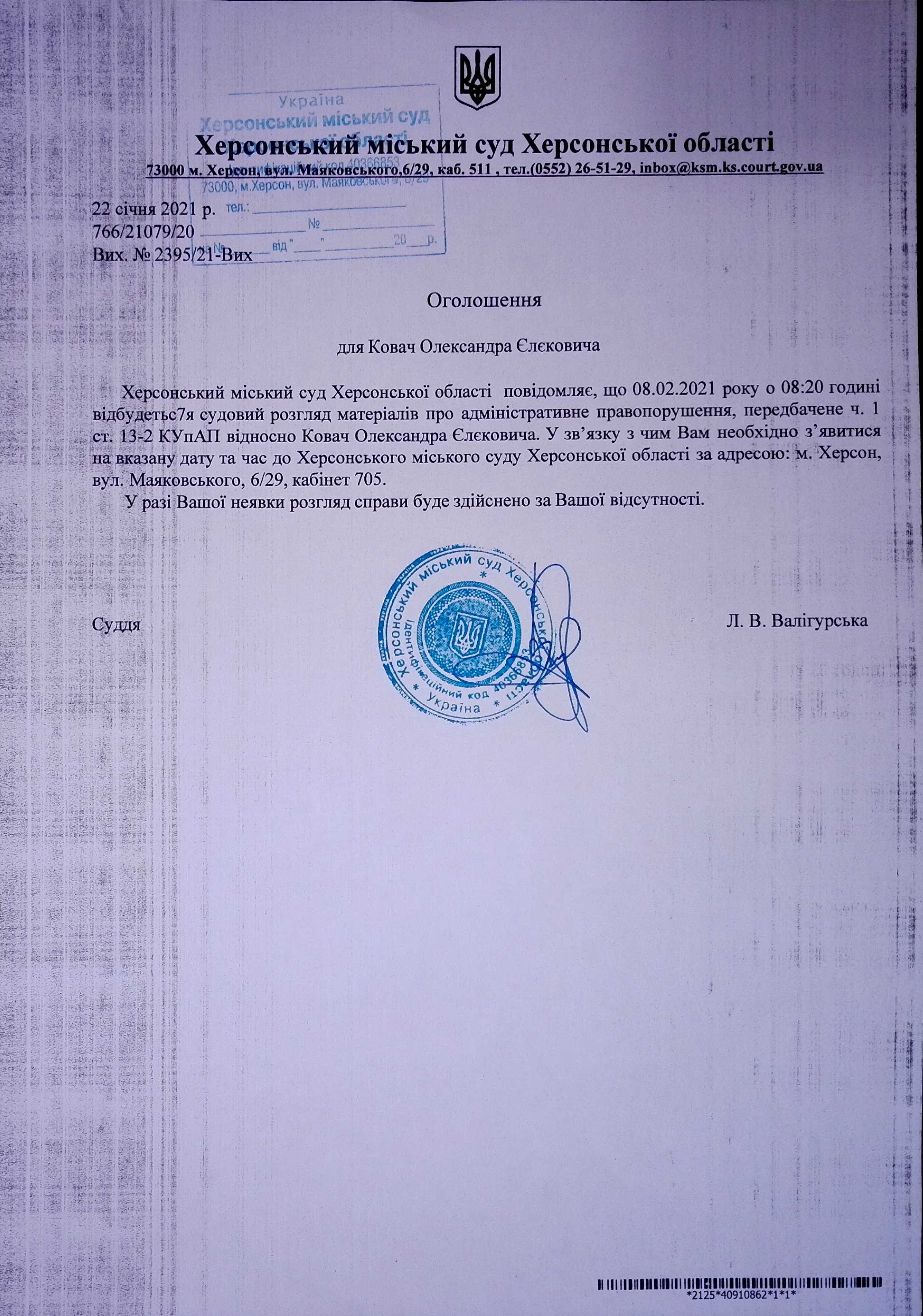 ОГОЛОШЕННЯ для Ковач Олександра Єлєковича