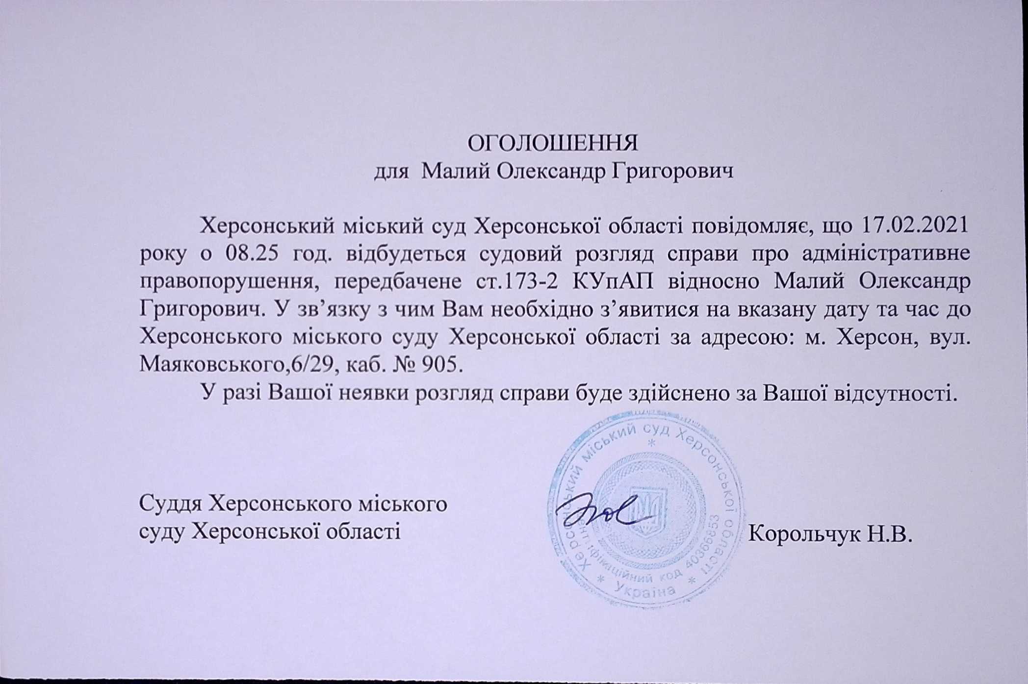 ОГОЛОШЕННЯ ПРО ВИКЛИК ДО СУДУ