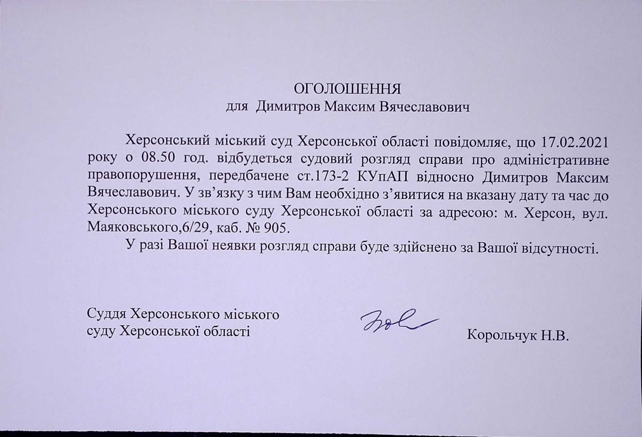 ОГОЛОШЕННЯ для Димитрова Максима Вячеславовича