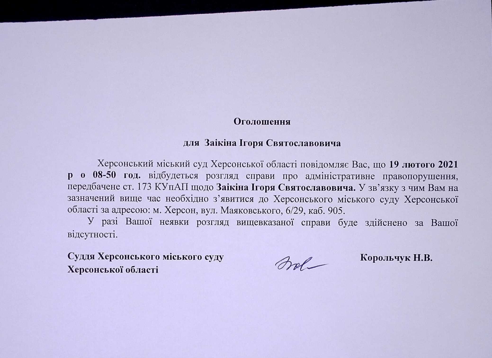 ОГОЛОШЕННЯ ПРО ВИКЛИК ДО СУДУ