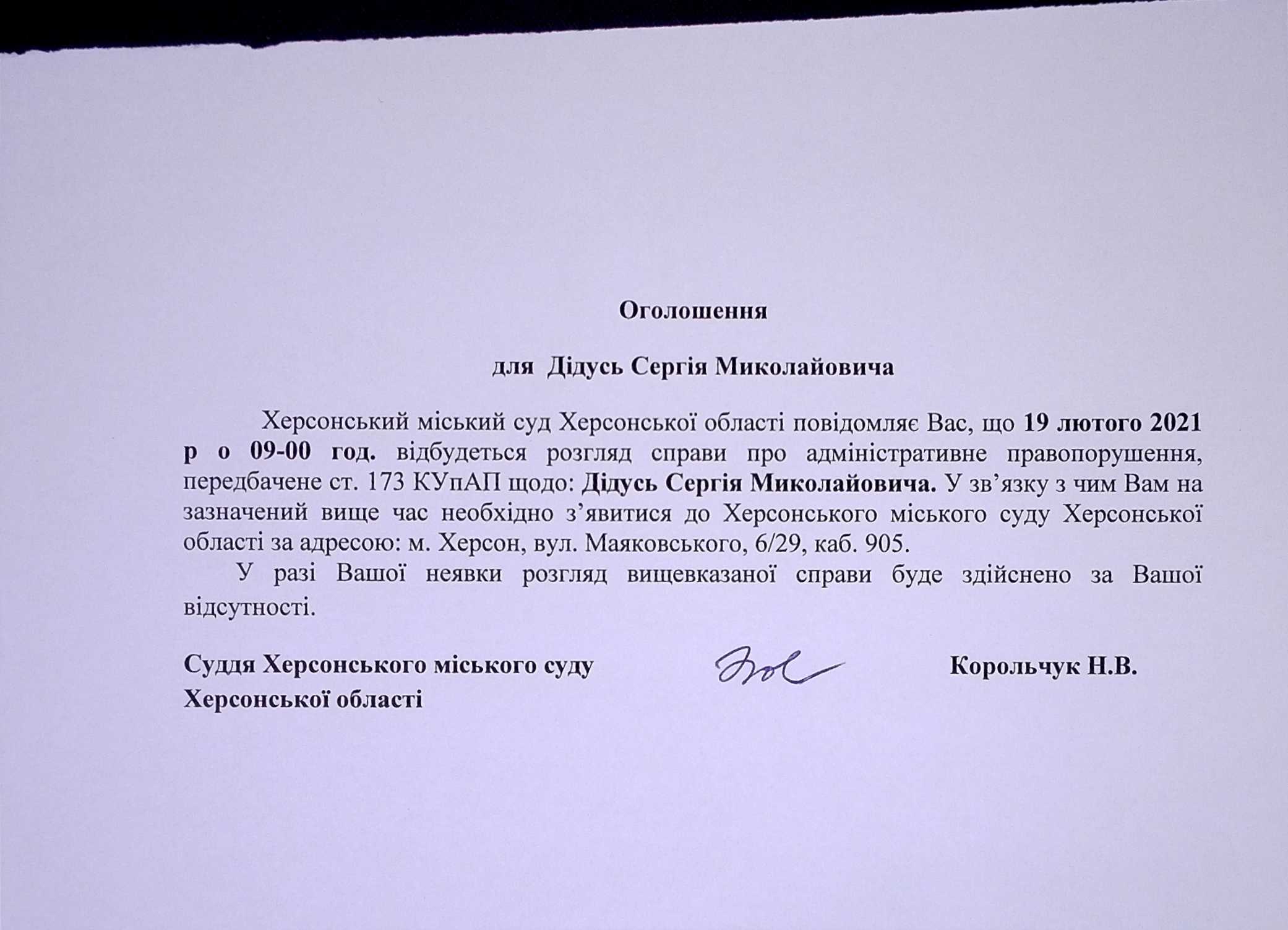 ОГОЛОШЕННЯ ПРО ВИКЛИК ДО СУДУ