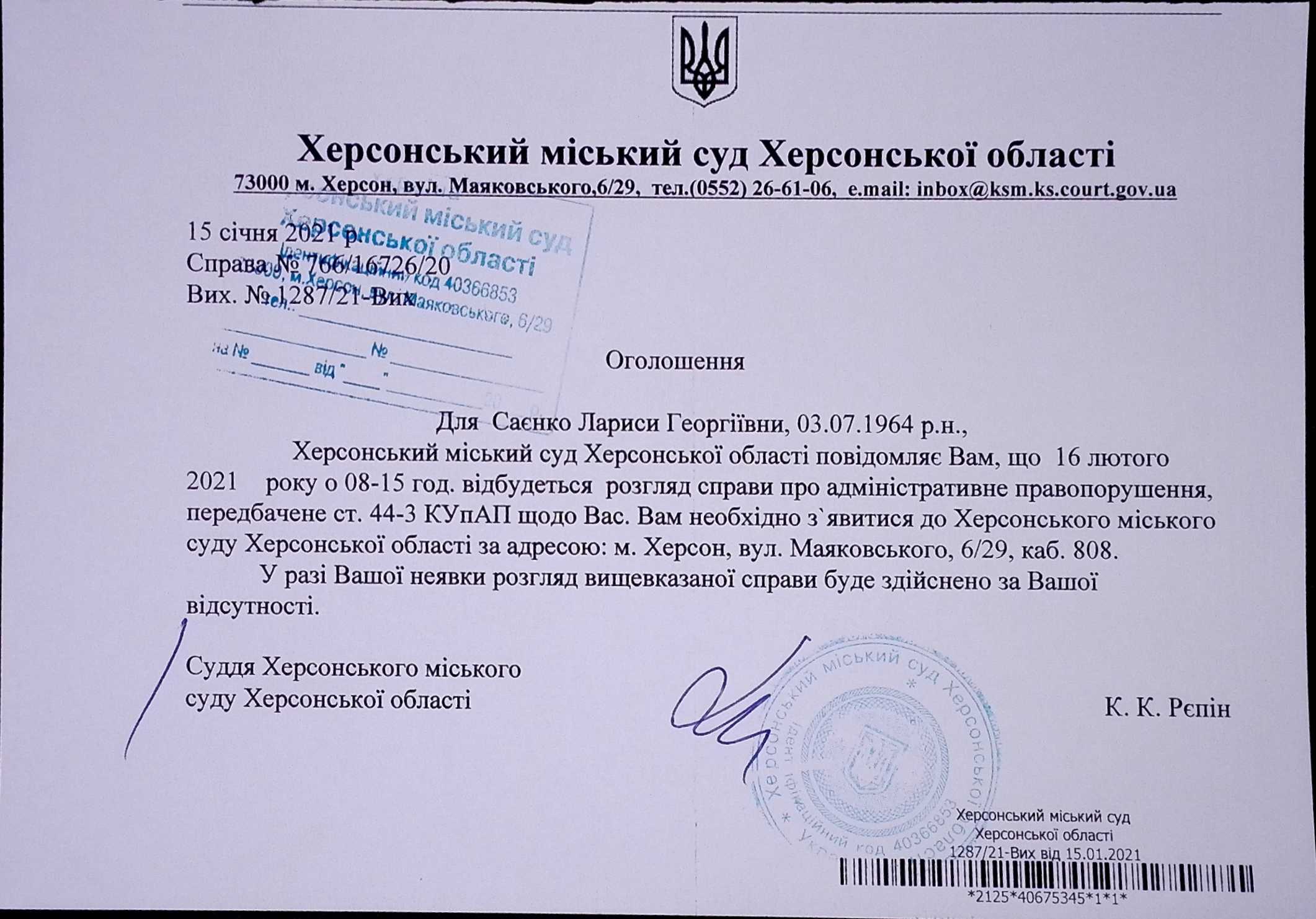 ОГОЛОШЕННЯ для Саєнко Лариси Георгіївни