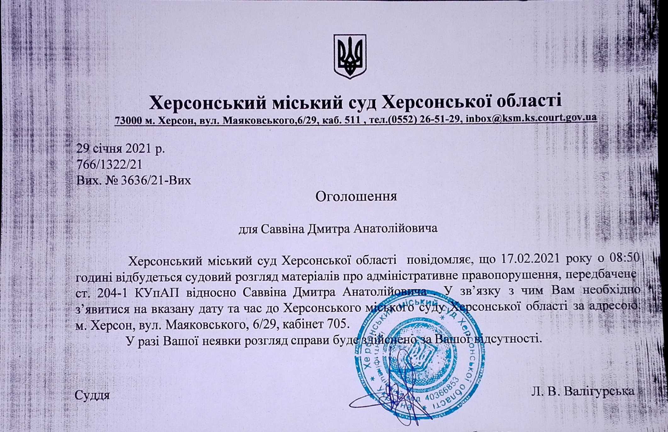 ОГОЛОШЕННЯ для Саввіна Дмитра Анатолійовича