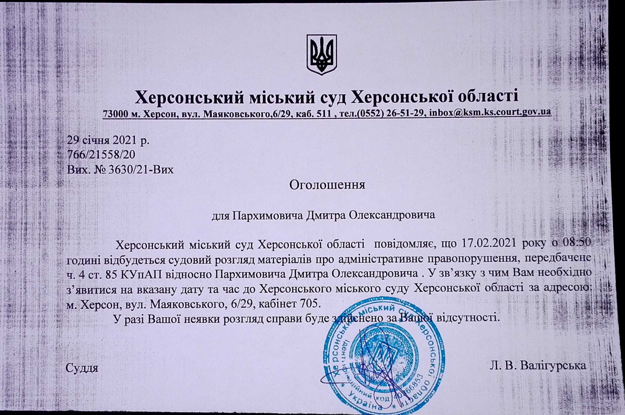 ОГОЛОШЕННЯ для Пархимовича Дмитра Олександровича