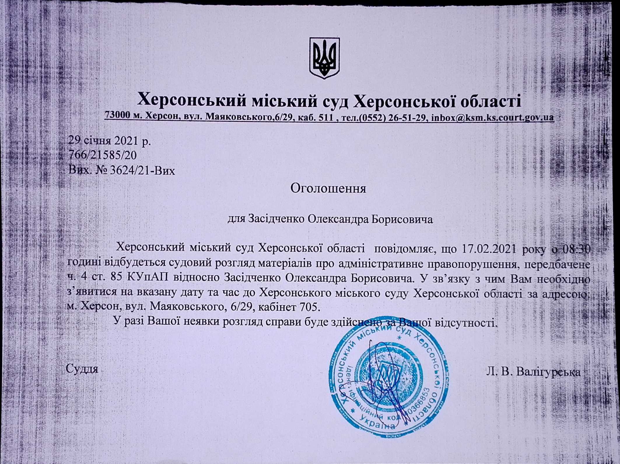 ОГОЛОШЕННЯ ПРО ВИКЛИК ДО СУДУ
