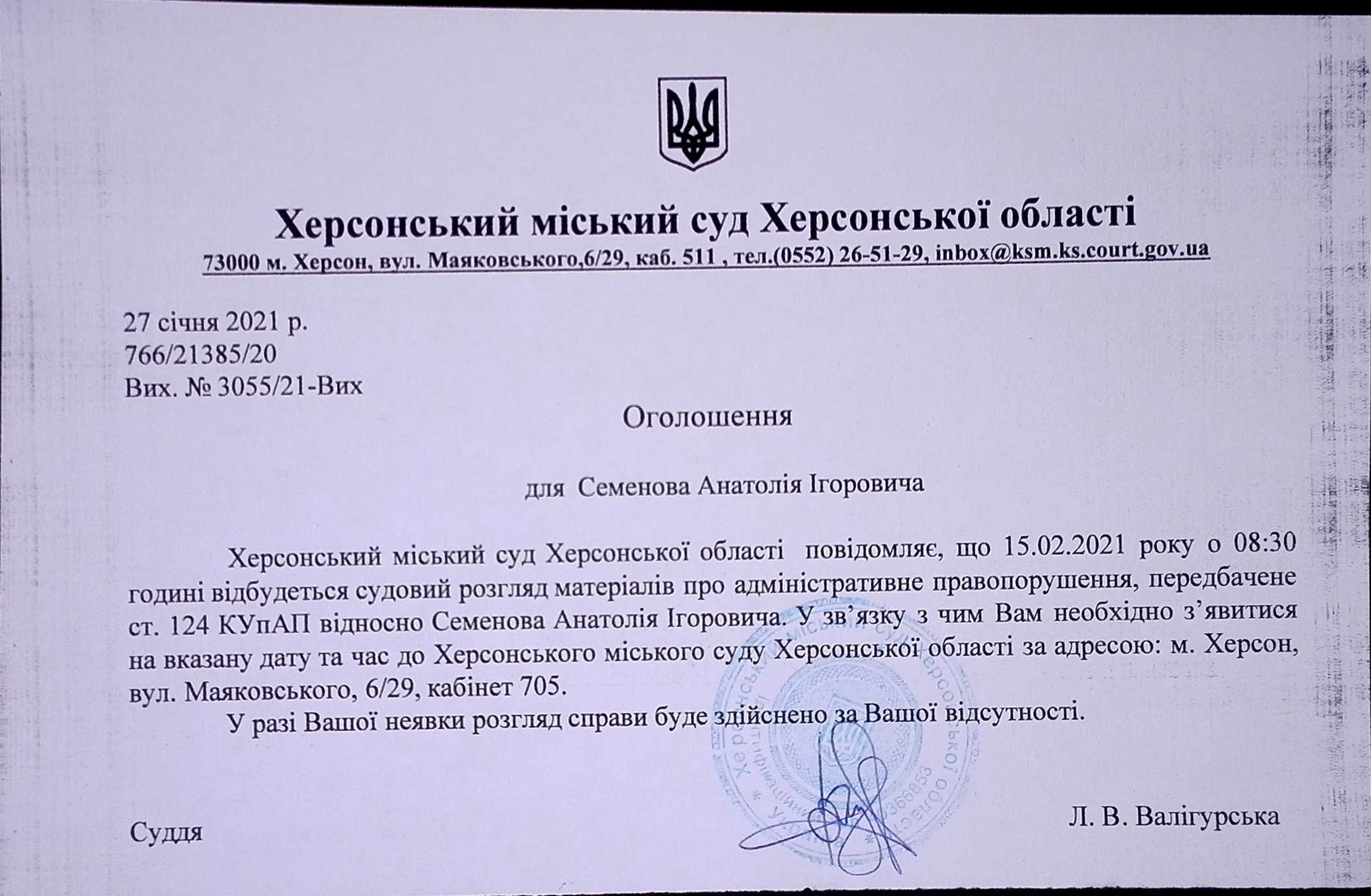 ОГОЛОШЕННЯ для Семенова Анатолія Ігоровича
