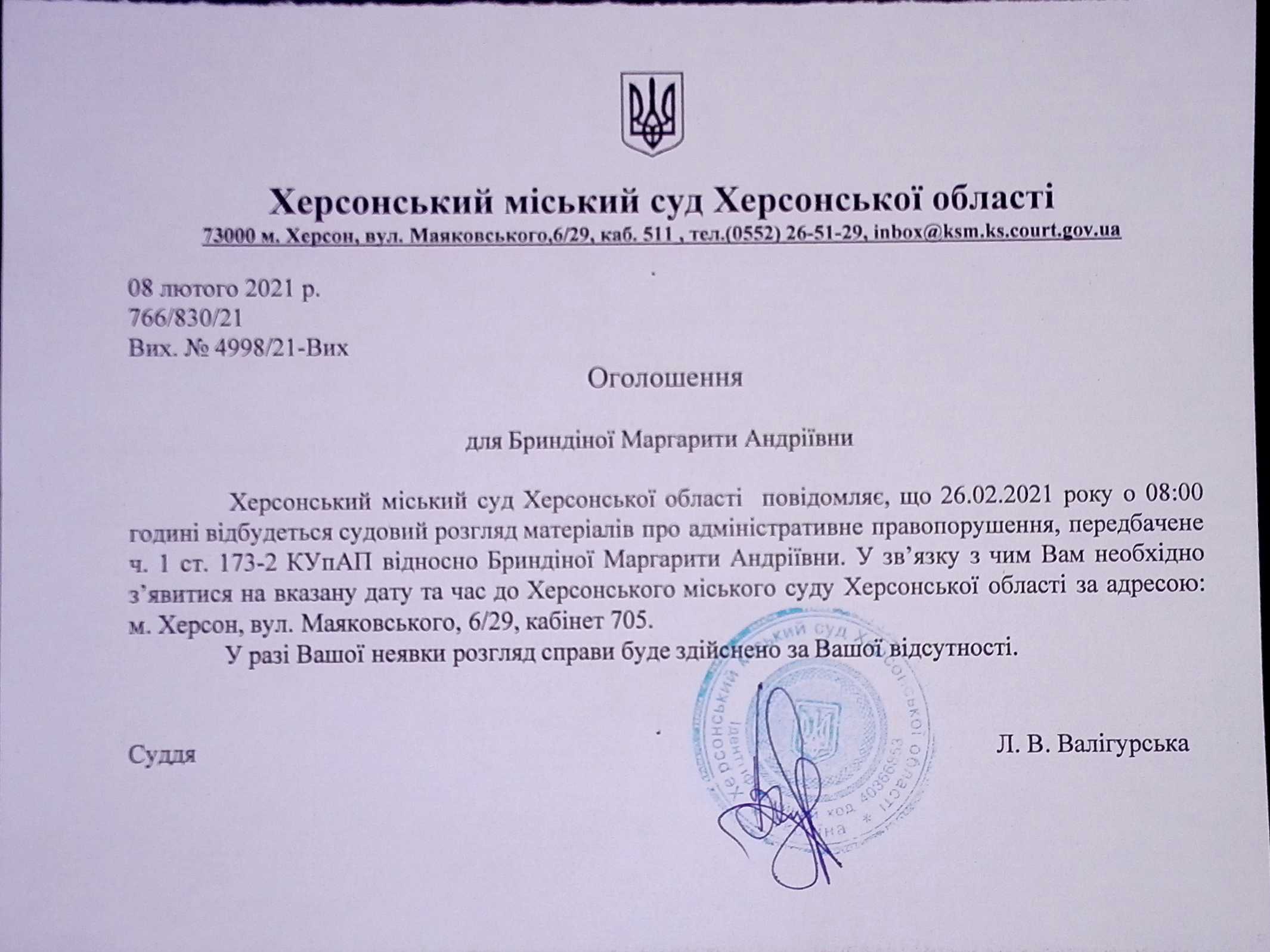 ОГОЛОШЕННЯ для Бриндіної Маргарити Андріївни