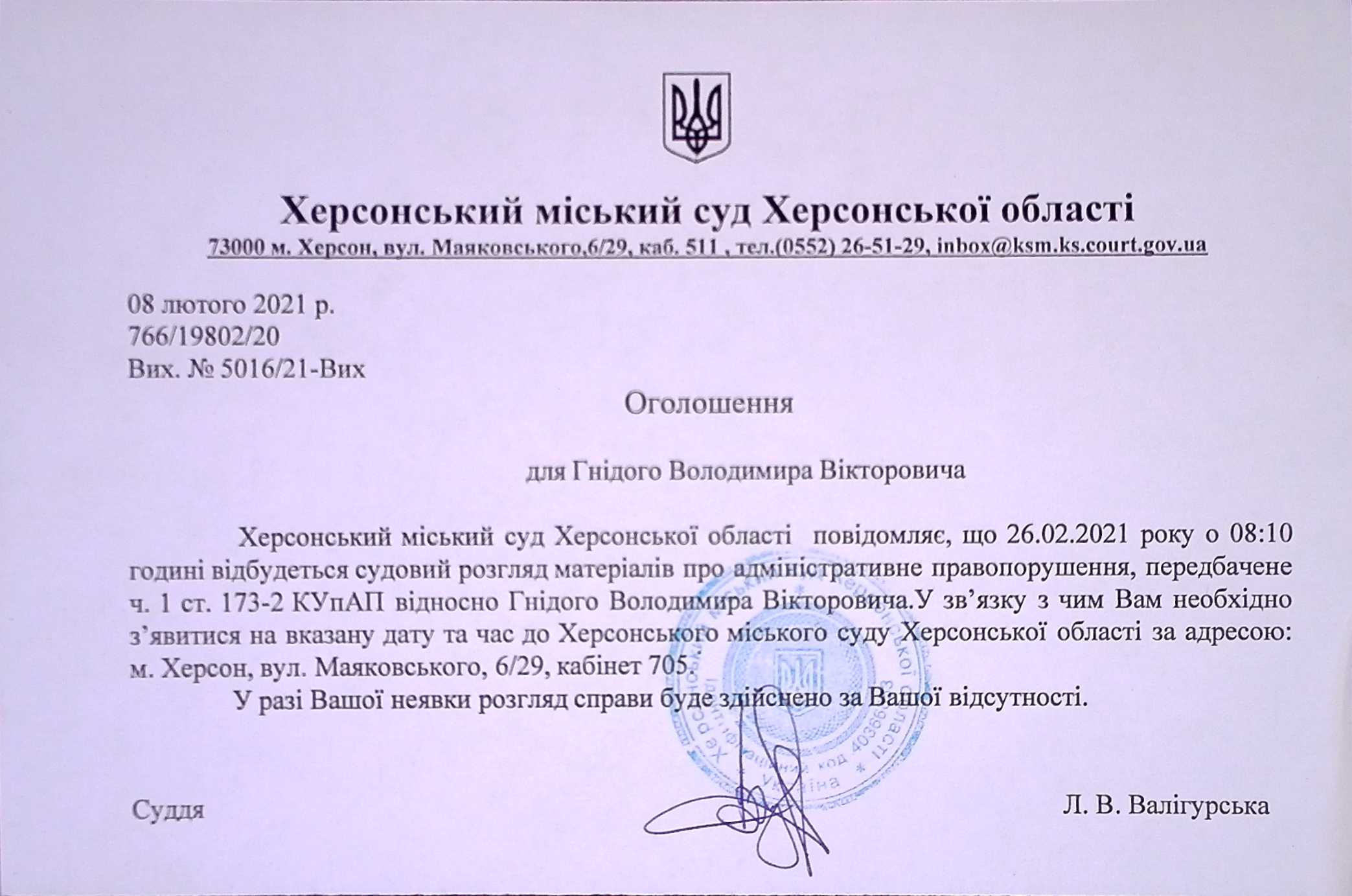 ОГОЛОШЕННЯ ПРО ВИКЛИК ДО СУДУ