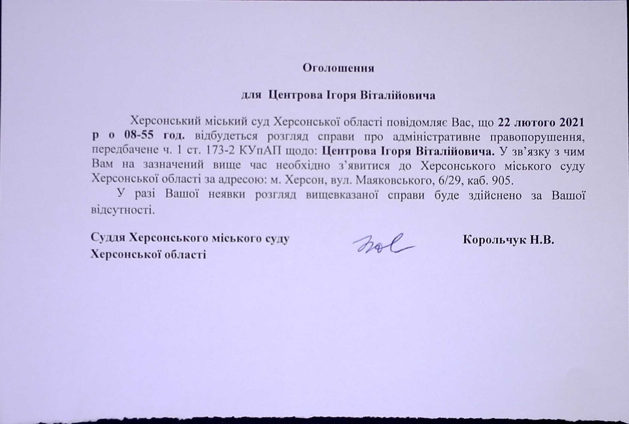 ОГОЛОШЕННЯ для Центрова Ігоря Віталійовича