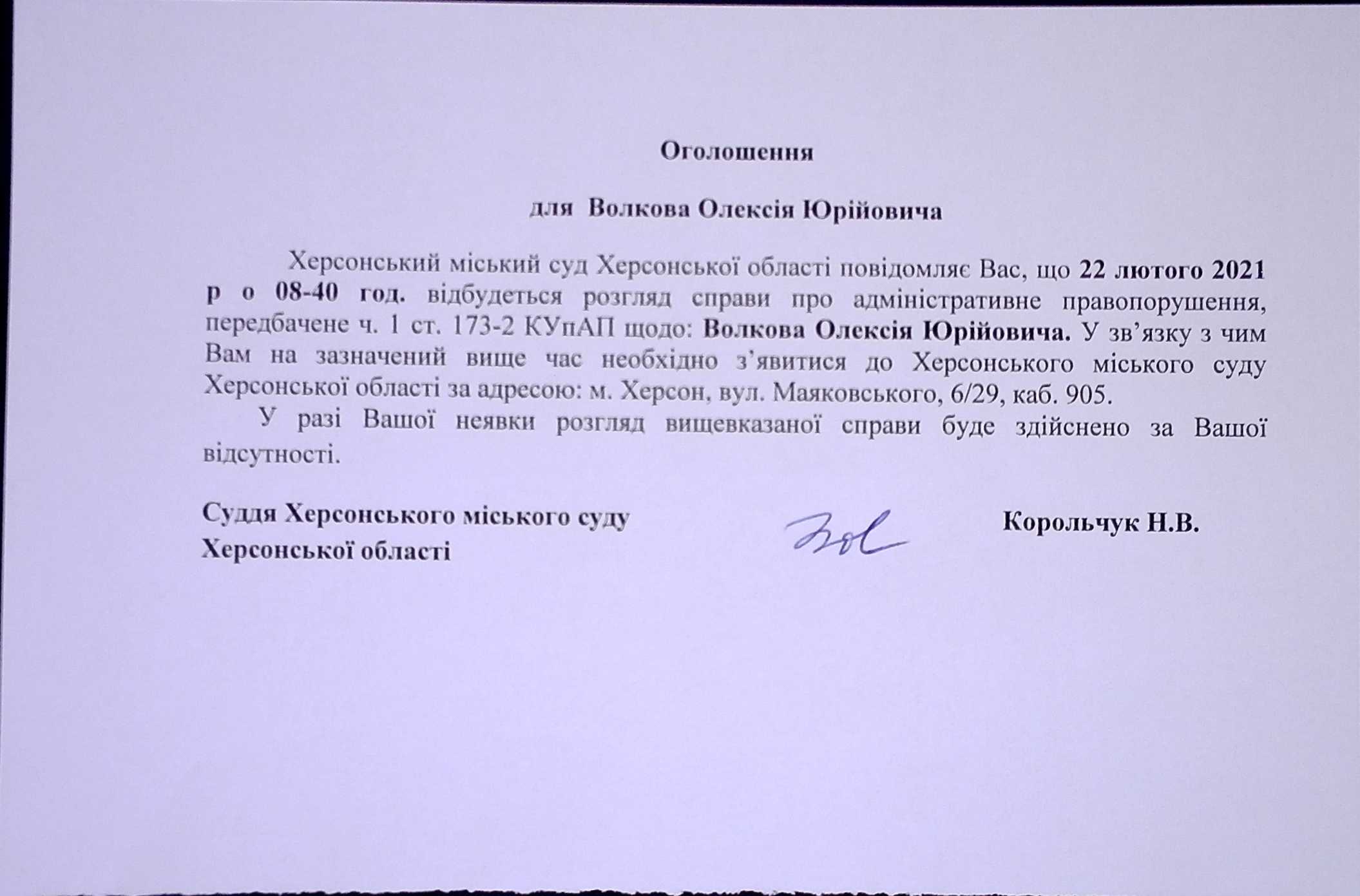 ОГОЛОШЕННЯ для Волкова Олексія Юрійовича