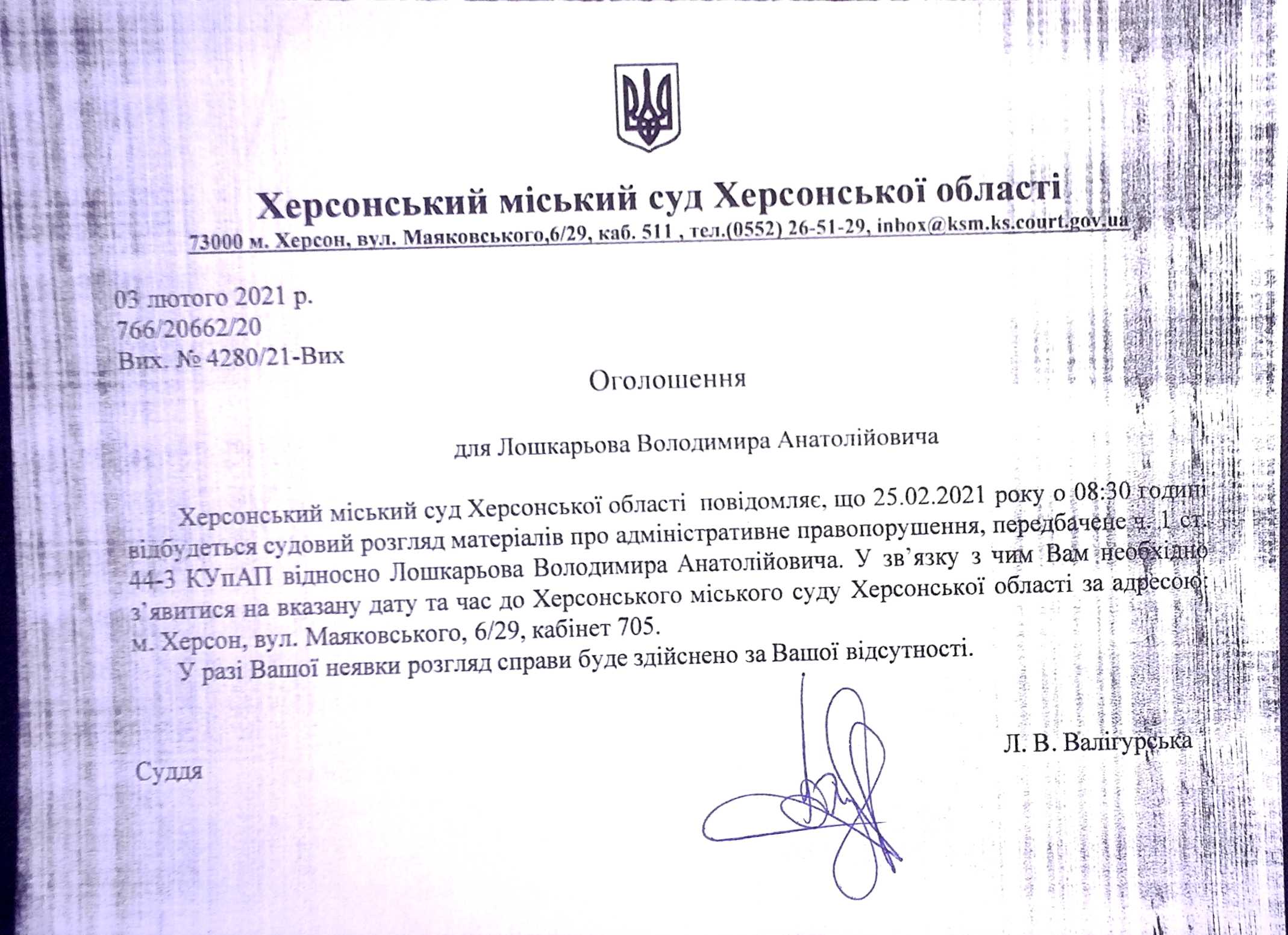 ОГОЛОШЕННЯ для Лошкарьова Володимира Анатолійовича