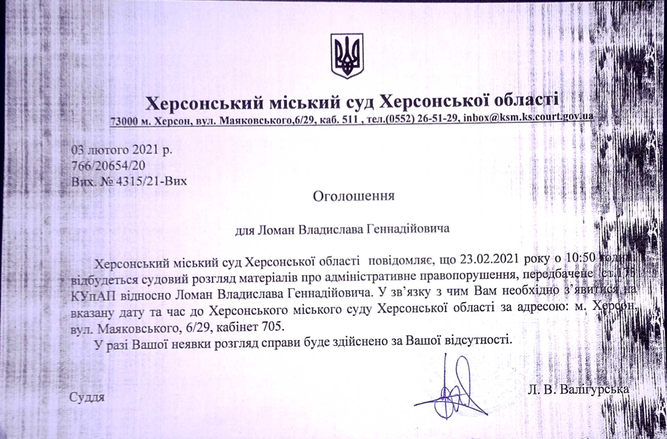 ОГОЛОШЕННЯ ПРО ВИКЛИК ДО СУДУ