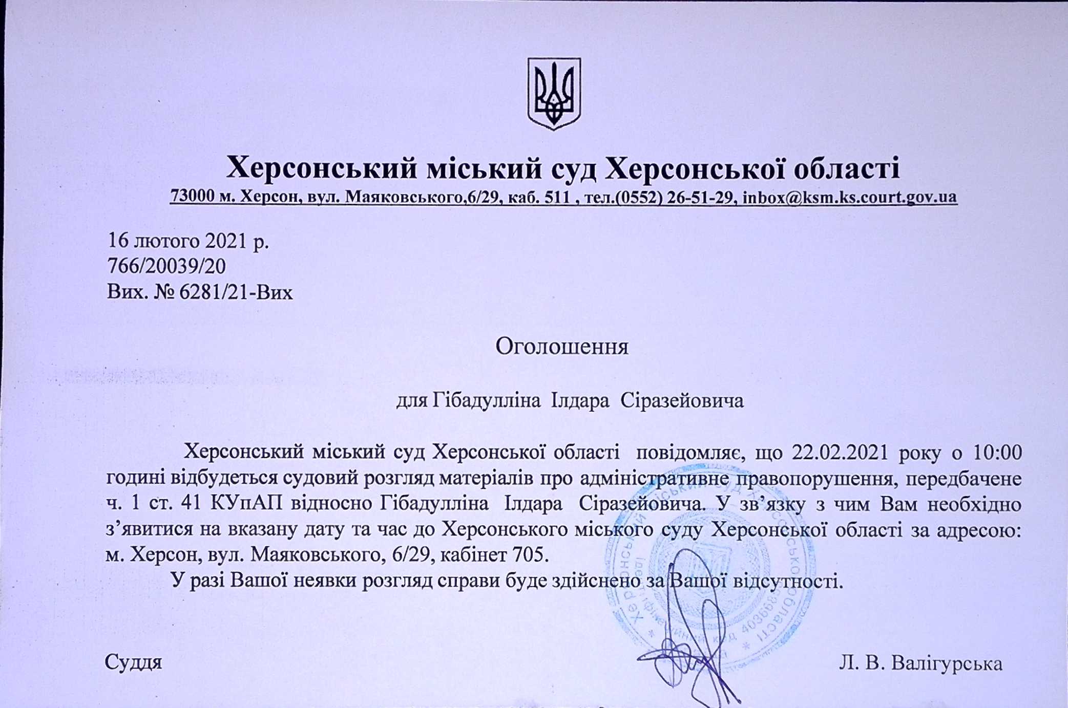 ОГОЛОШЕННЯ для Гібаддуліна Ілдара Сіразейовича