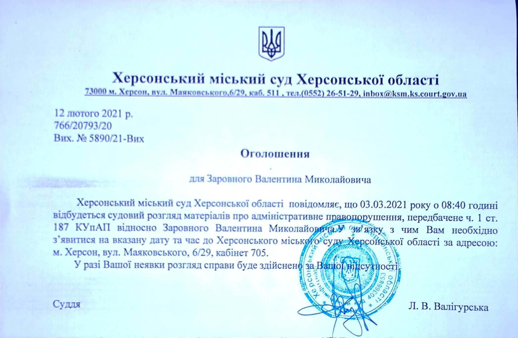 ОГОЛОШЕННЯ ПРО ВИКЛИК ДО СУДУ