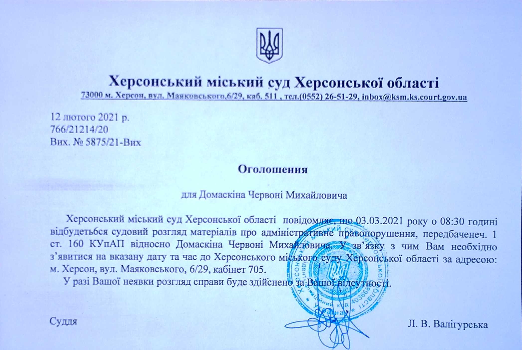 ОГОЛОШЕННЯ для Домаскіна Червоні Михайловича