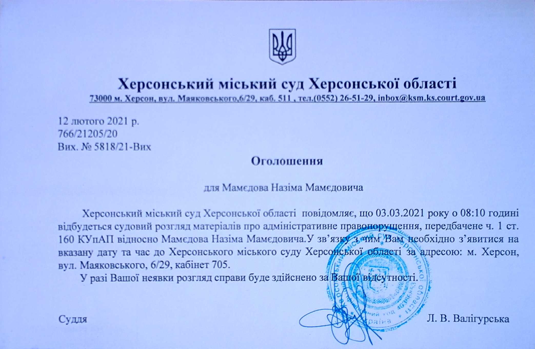 ОГОЛОШЕННЯ для Мамєдова Назіма Мамєдовича