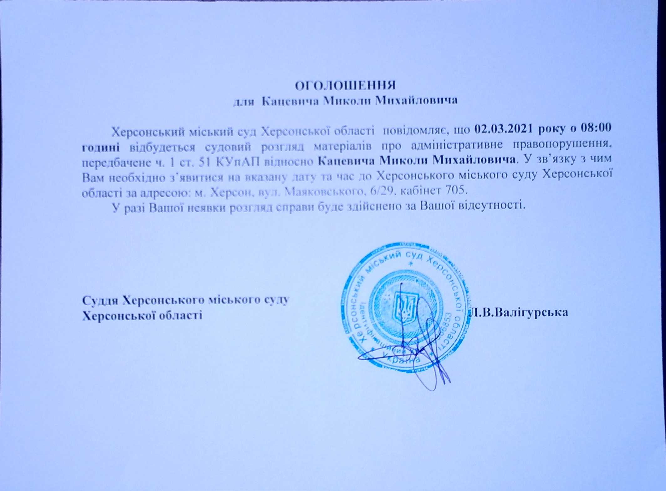 ОГОЛОШЕННЯ ПРО ВИКЛИК ДО СУДУ