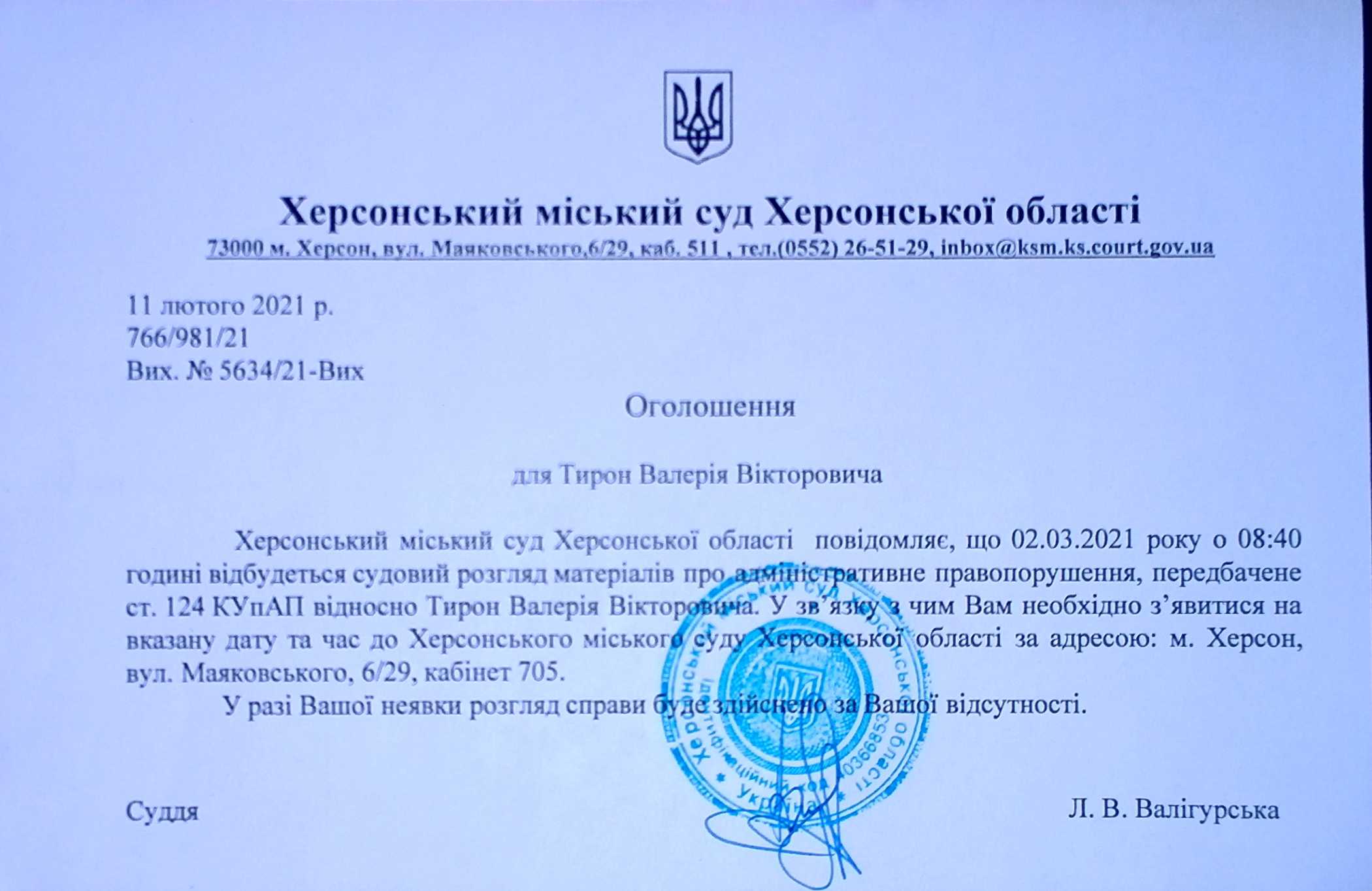 ОГОЛОШЕННЯ для Тирона Валерія Вікторовича