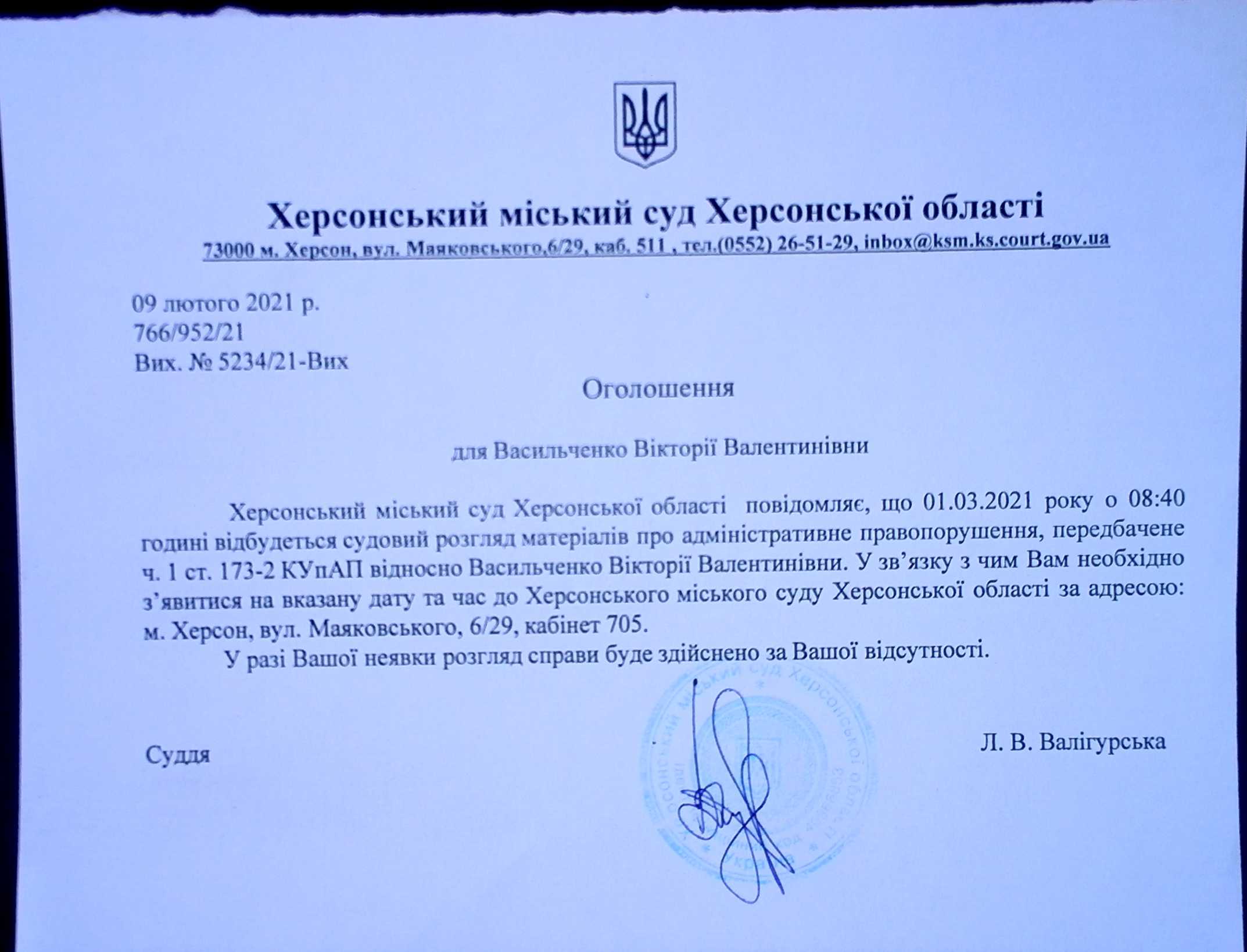 ОГОЛОШЕННЯ для Васильченко Вікторії Валентинівни