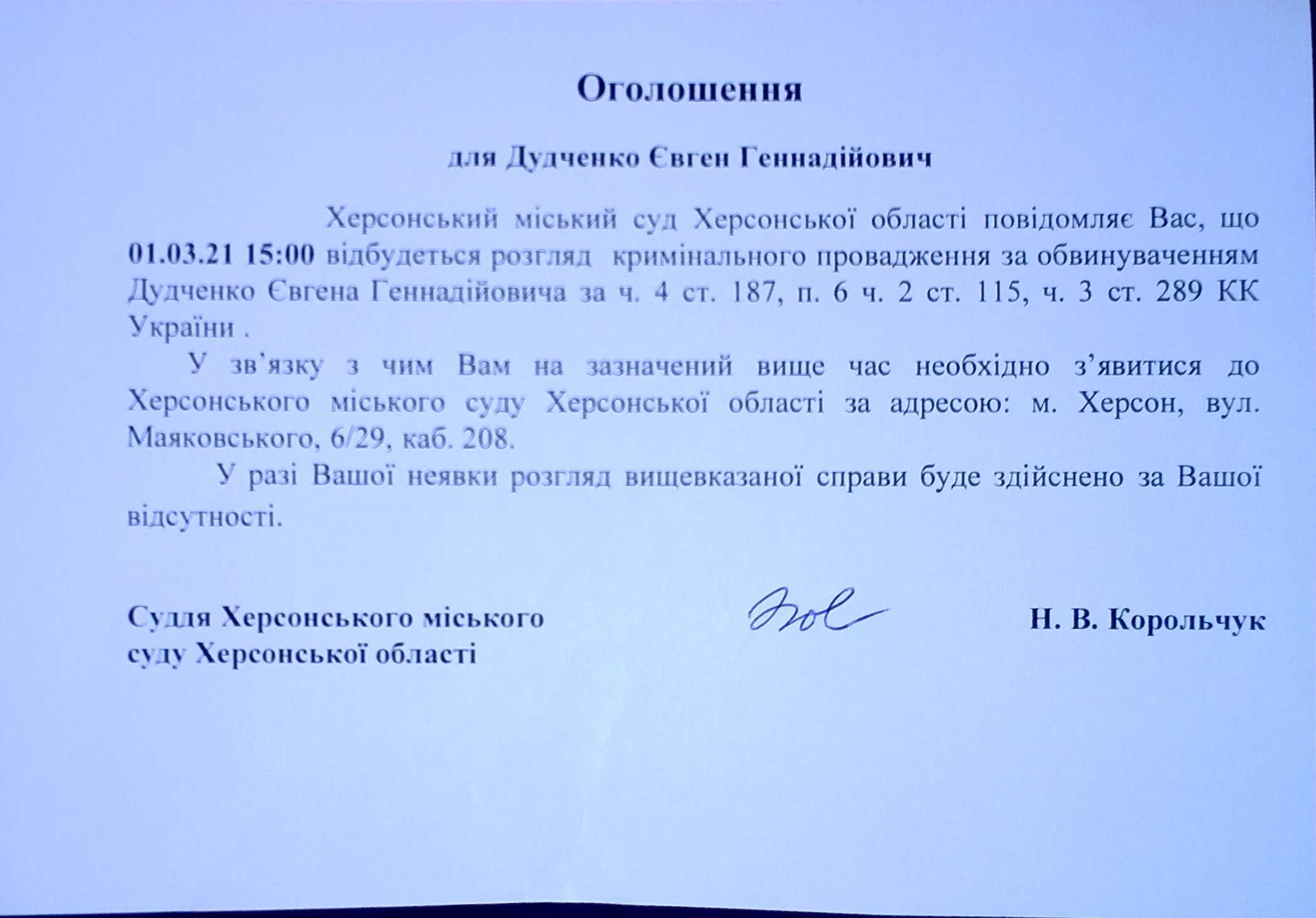 ОГОЛОШЕННЯ для Дудченко Євгена Геннадійовича