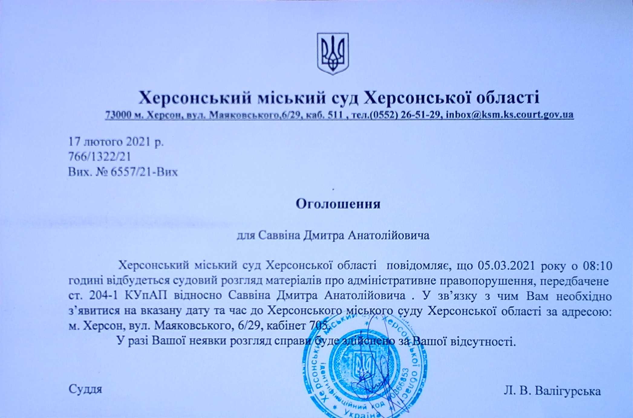 ОГОЛОШЕННЯ ПРО ВИКЛИК ДО СУДУ