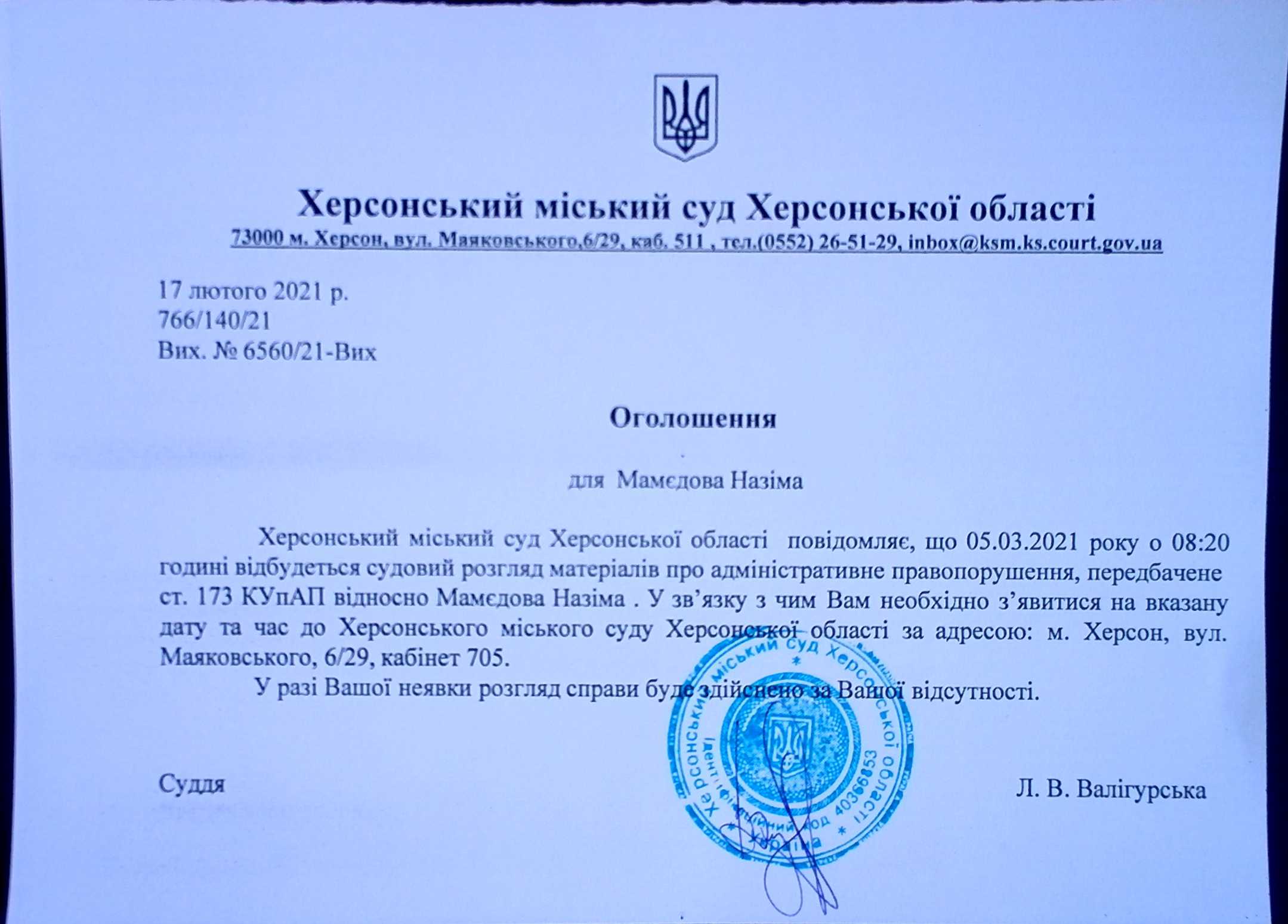 ОГОЛОШЕННЯ ПРО ВИКЛИК ДО СУДУ