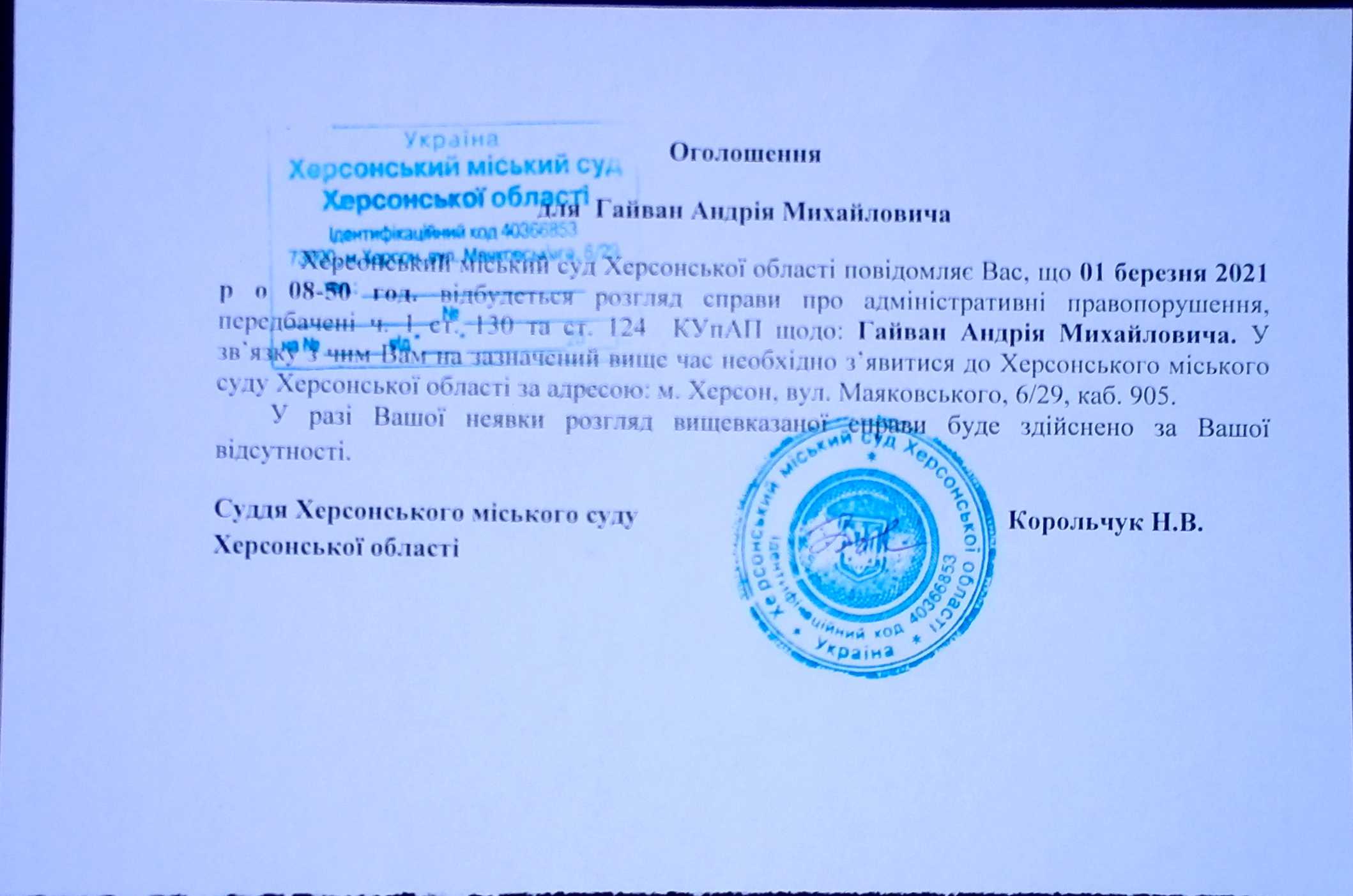 ОГОЛОШЕННЯ ПРО ВИКЛИК ДО СУДУ