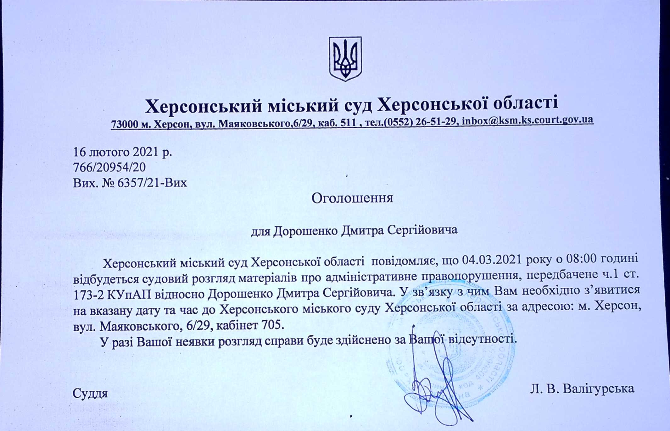 ОГОЛОШЕННЯ для Дорошенко Дмитра Сергійовича