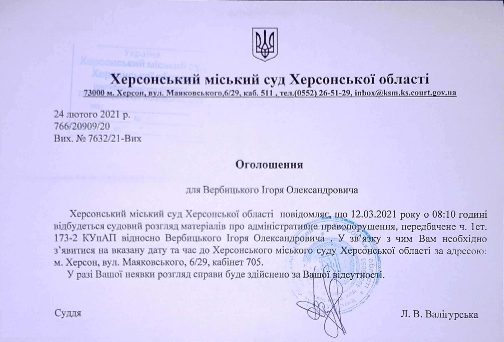 ОГОЛОШЕННЯ для Вербицького Ігоря Олександровича