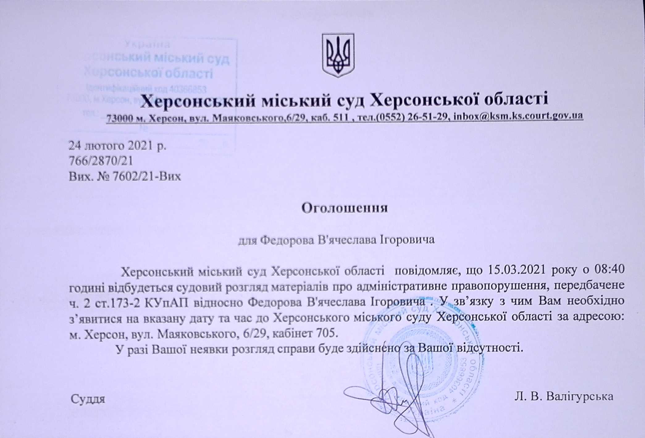 ОГОЛОШЕННЯ для Федорова Вячеслава Ігоровича