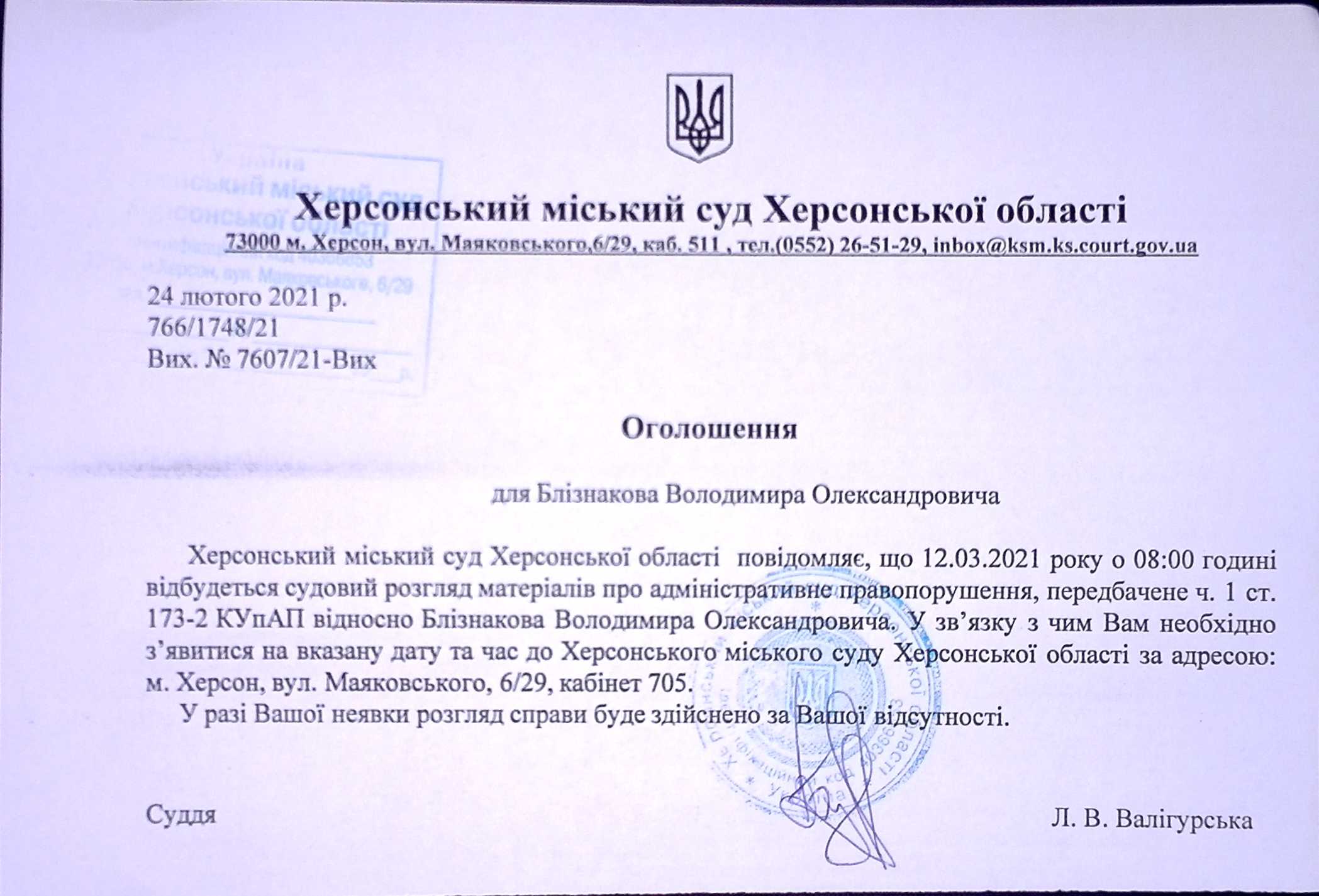 ОГОЛОШЕННЯ ПРО ВИКЛИК ДО СУДУ