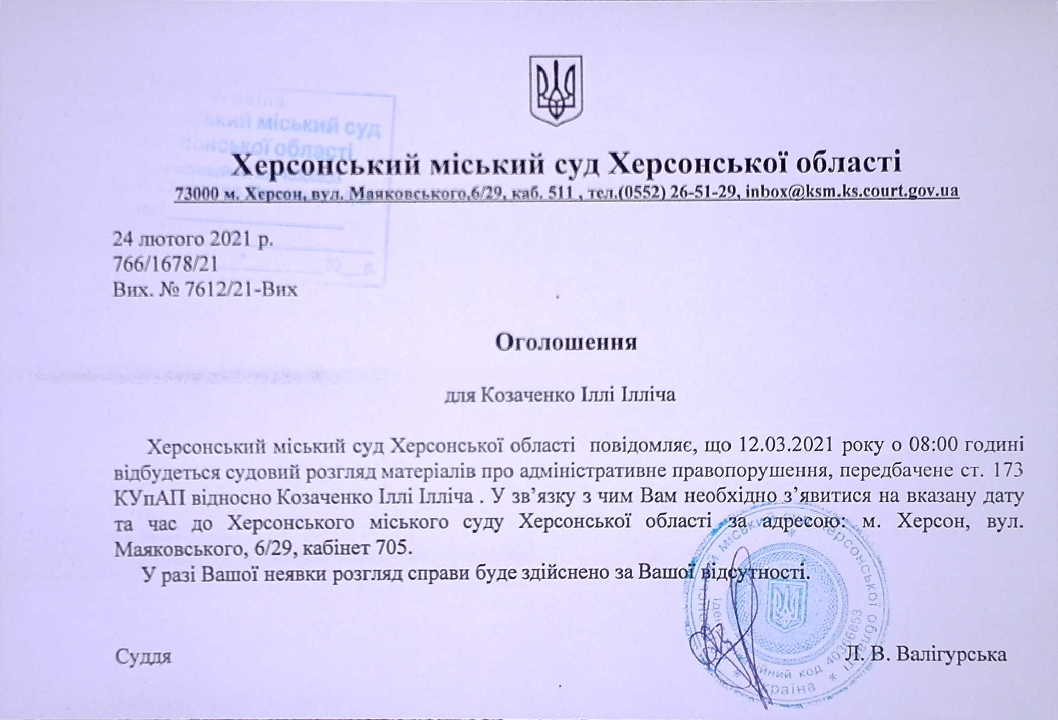 ОГОЛОШЕННЯ ПРО ВИКЛИК ДО СУДУ