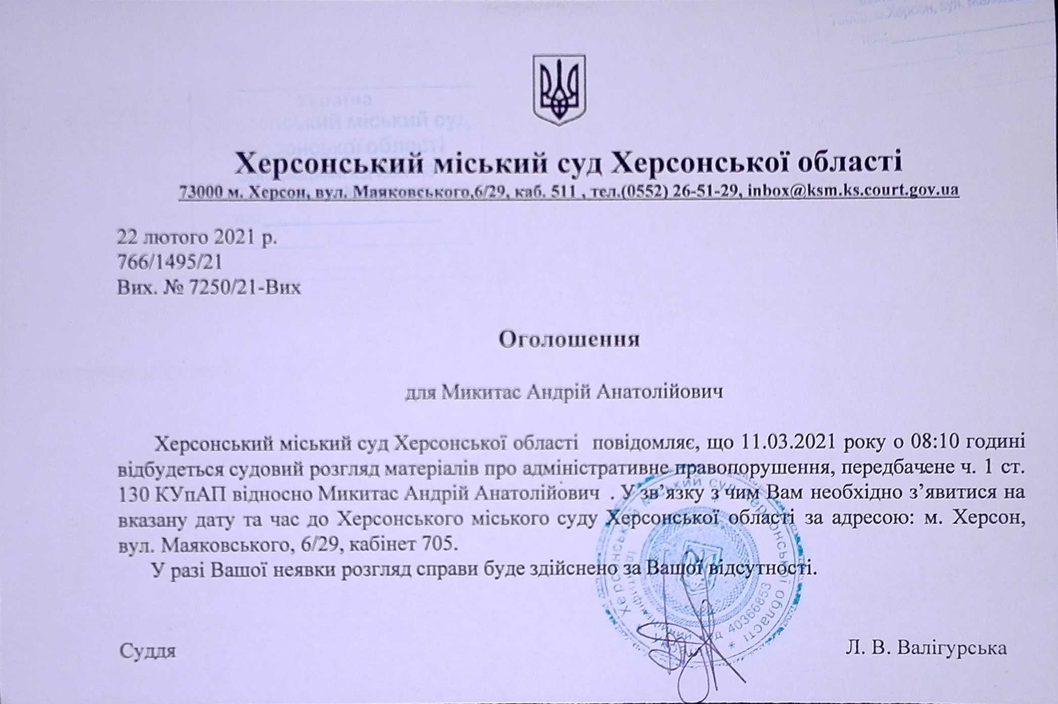 ОГОЛОШЕННЯ ПРО ВИКЛИК ДО СУДУ