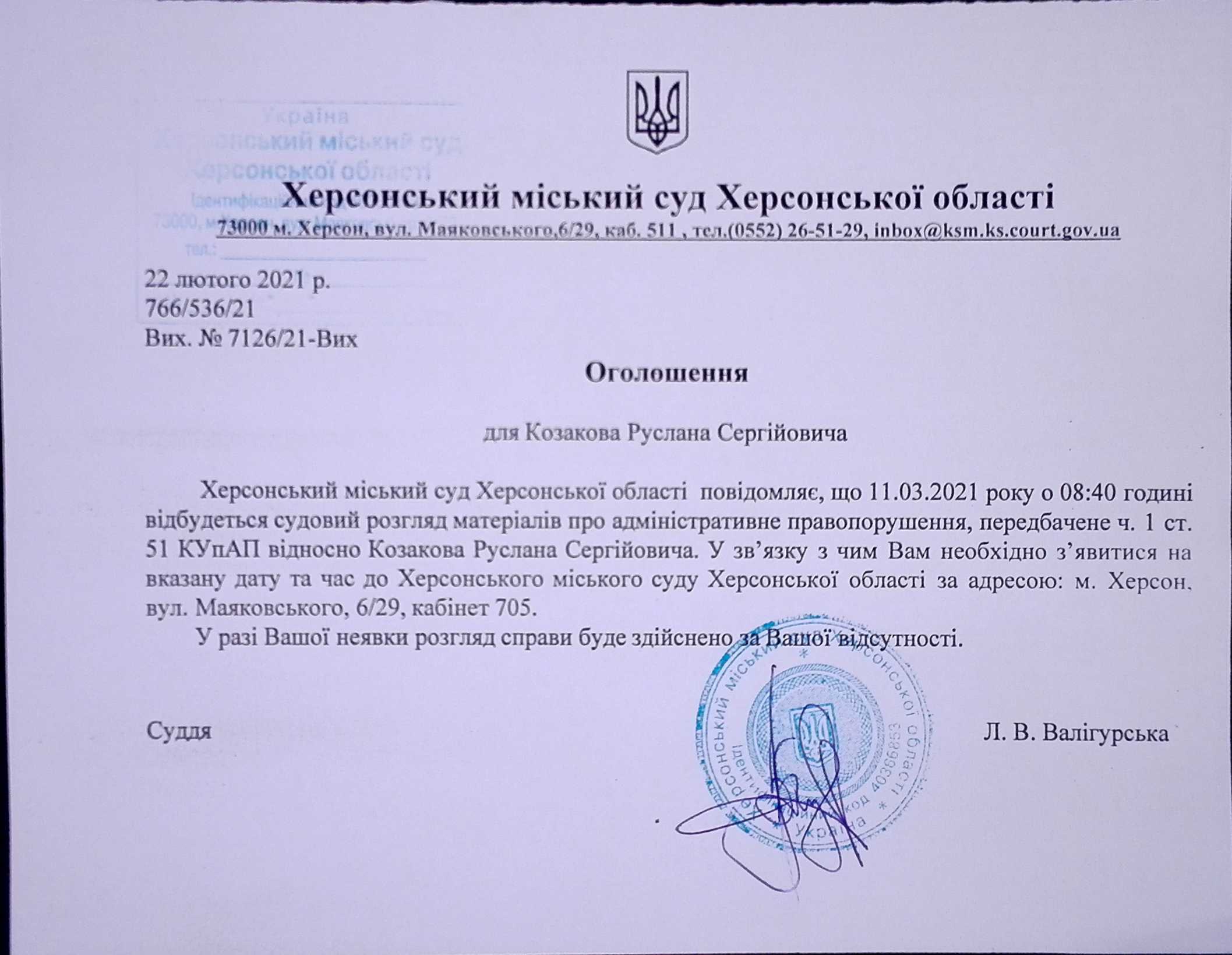 ОГОЛОШЕННЯ для Козакова Руслана Сергійовича