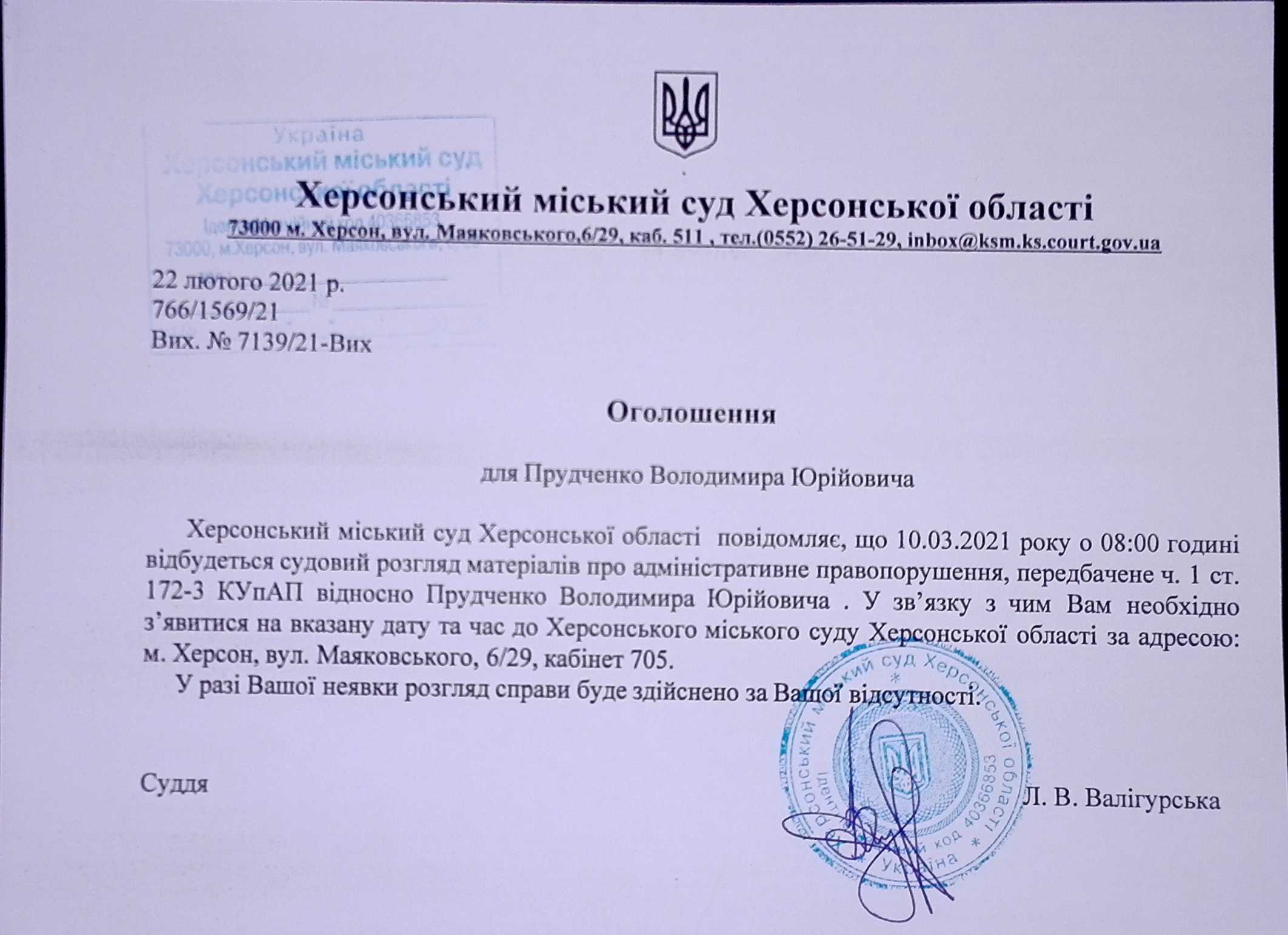 ОГОЛОШЕННЯ для Прудченко Володимира Юрійовича