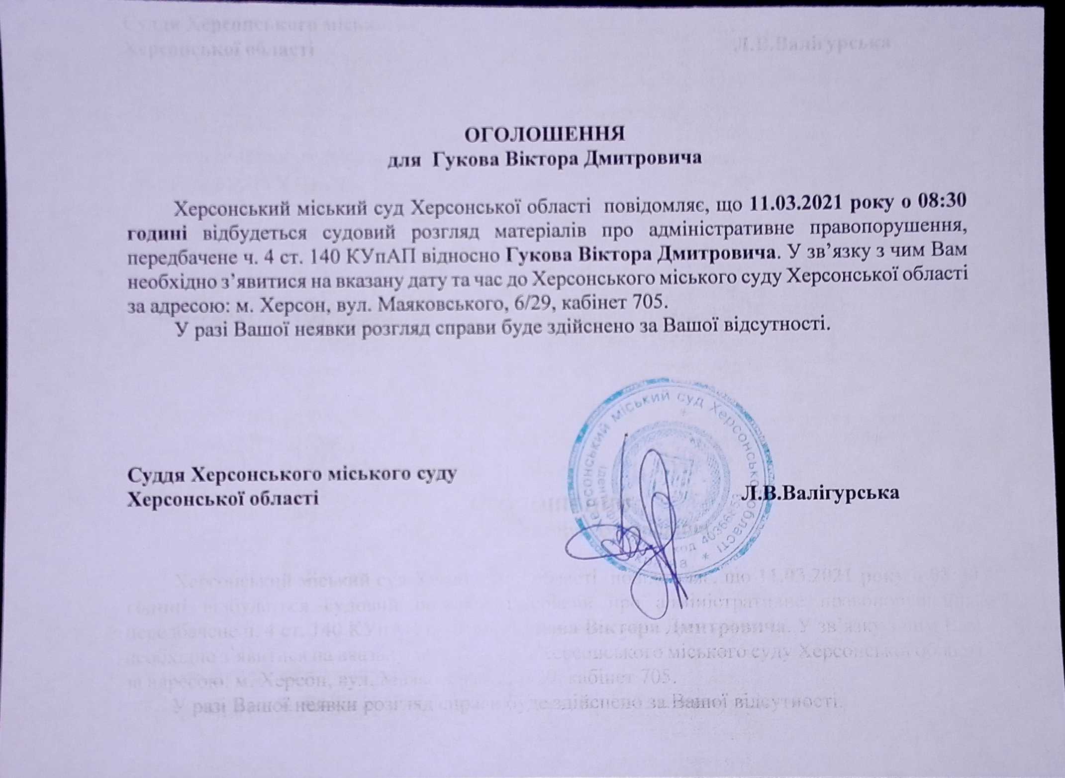 ОГОЛОШЕННЯ ПРО ВИКЛИК ДО СУДУ