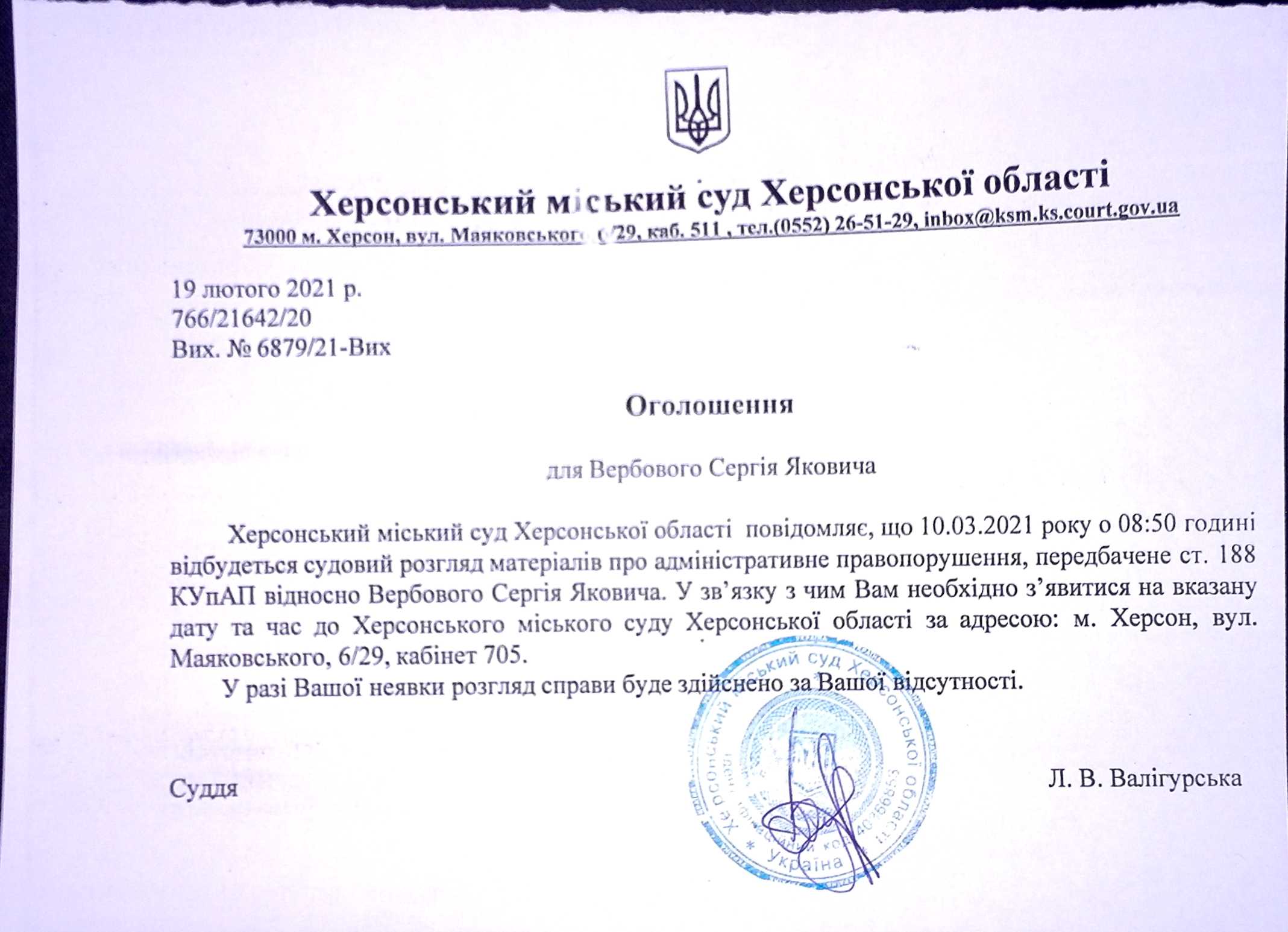 ОГОЛОШЕННЯ ПРО ВИКЛИК ДО СУДУ