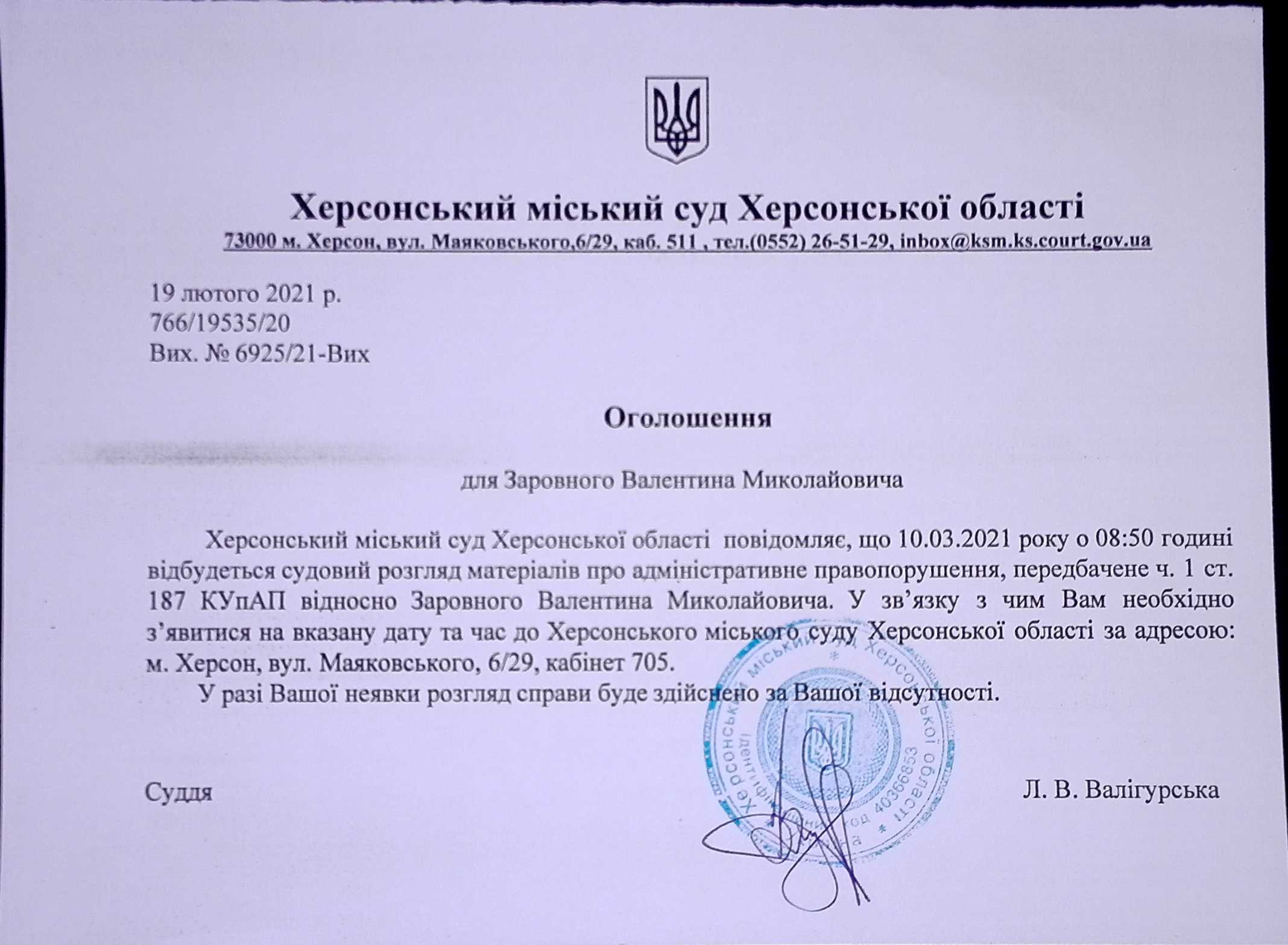 ОГОЛОШЕННЯ ПРО ВИКЛИК ДО СУДУ