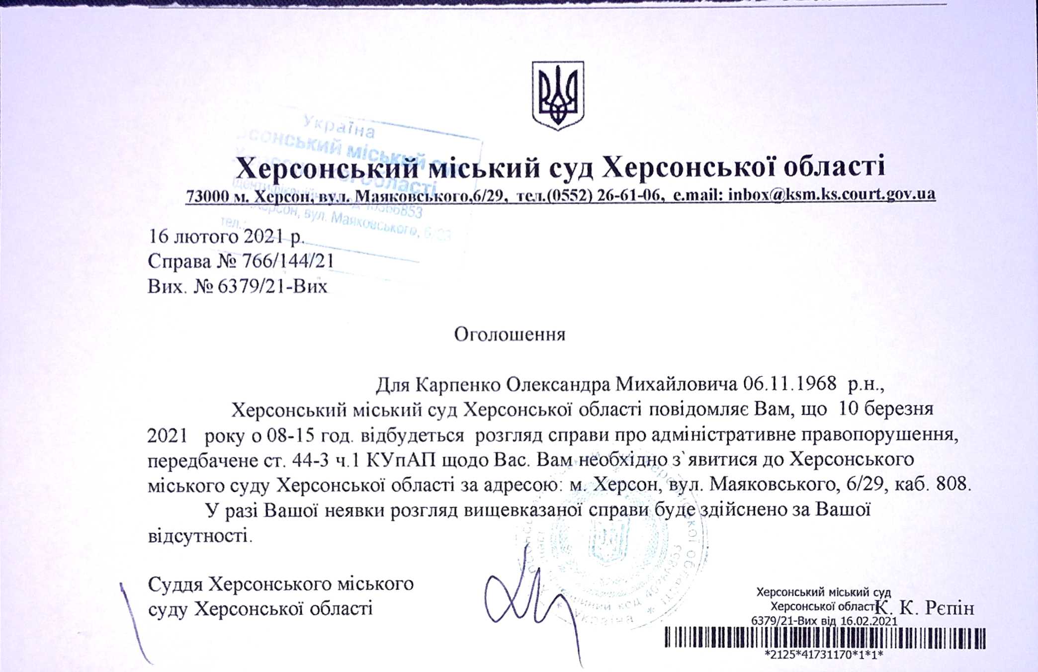 ОГОЛОШЕННЯ для Карпенко Олександра Михайловича