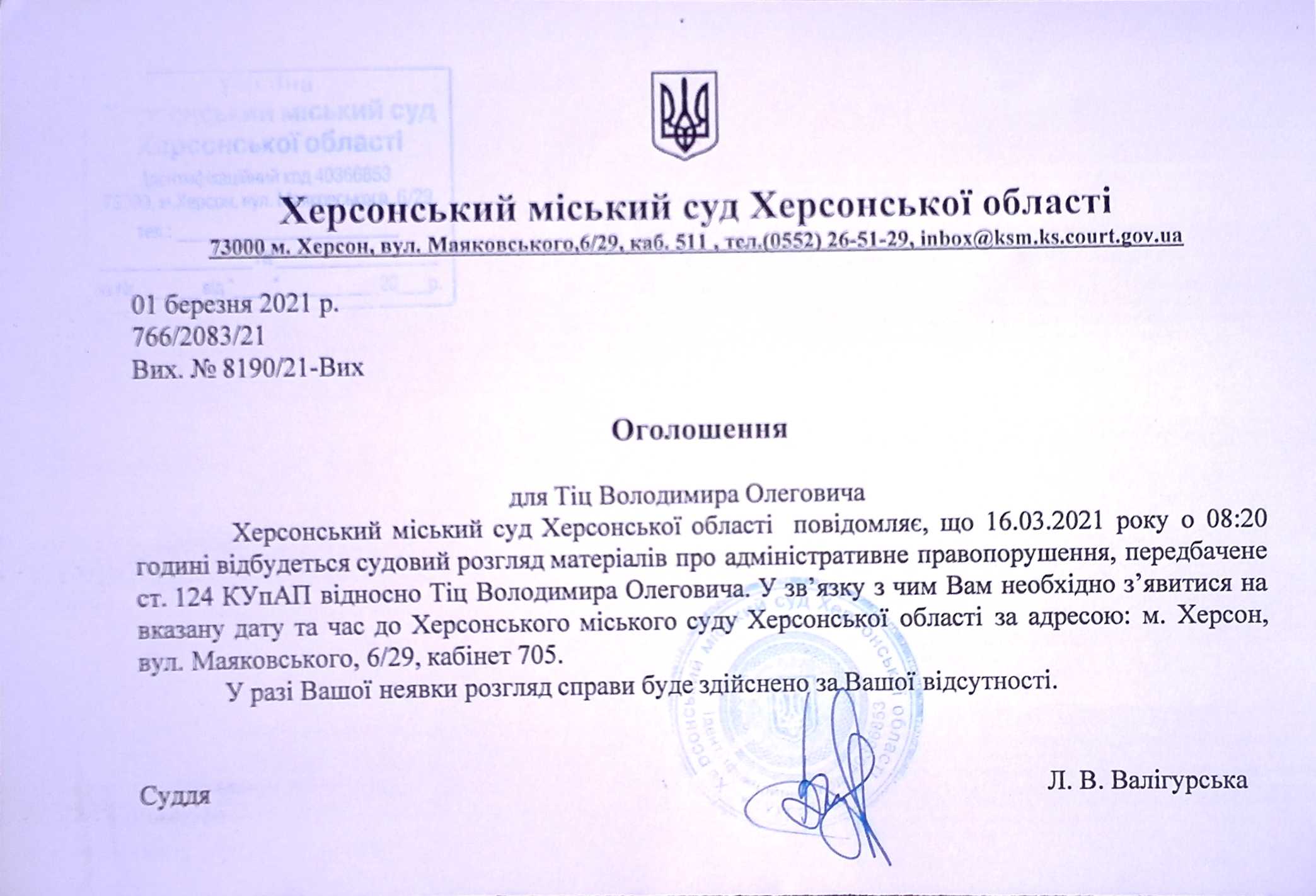 ОГОЛОШЕННЯ ПРО ВИКЛИК ДО СУДУ