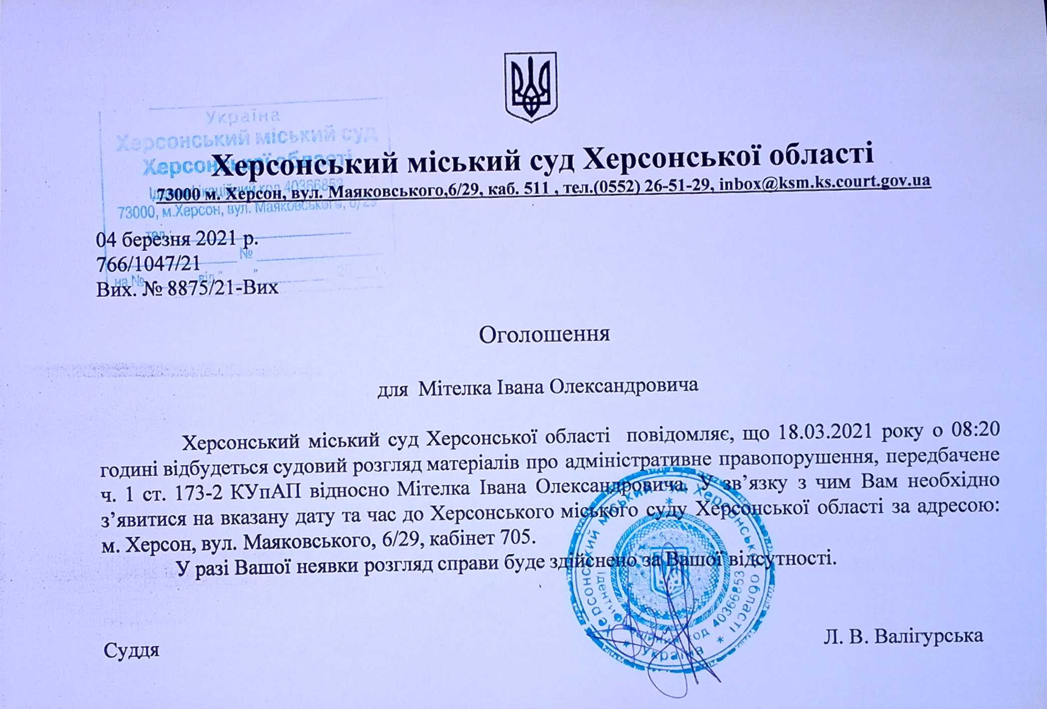 ОГОЛОШЕННЯ ПРО ВИКЛИК ДО СУДУ