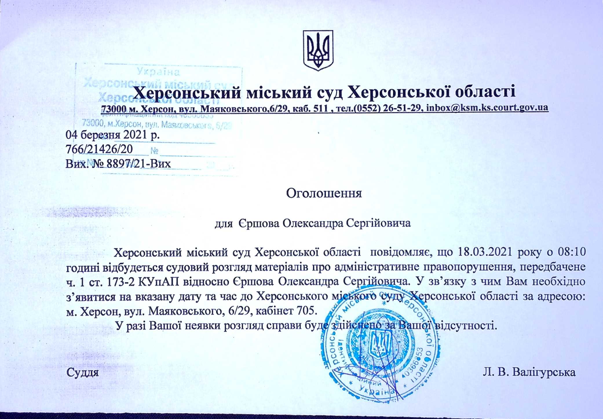 ОГОЛОШЕННЯ для Єршова Олександра Сергійовича