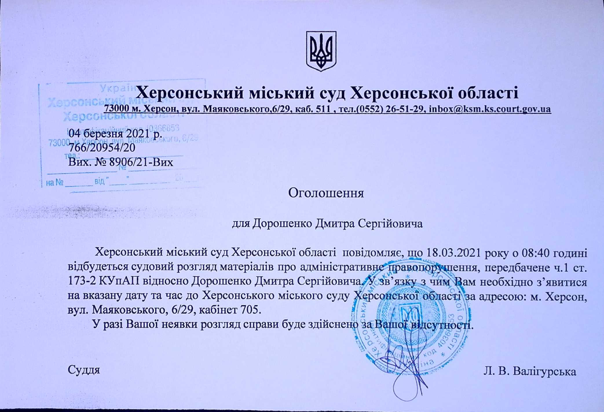 ОГОЛОШЕННЯ для Дорошенко Дмитра Сергійовича