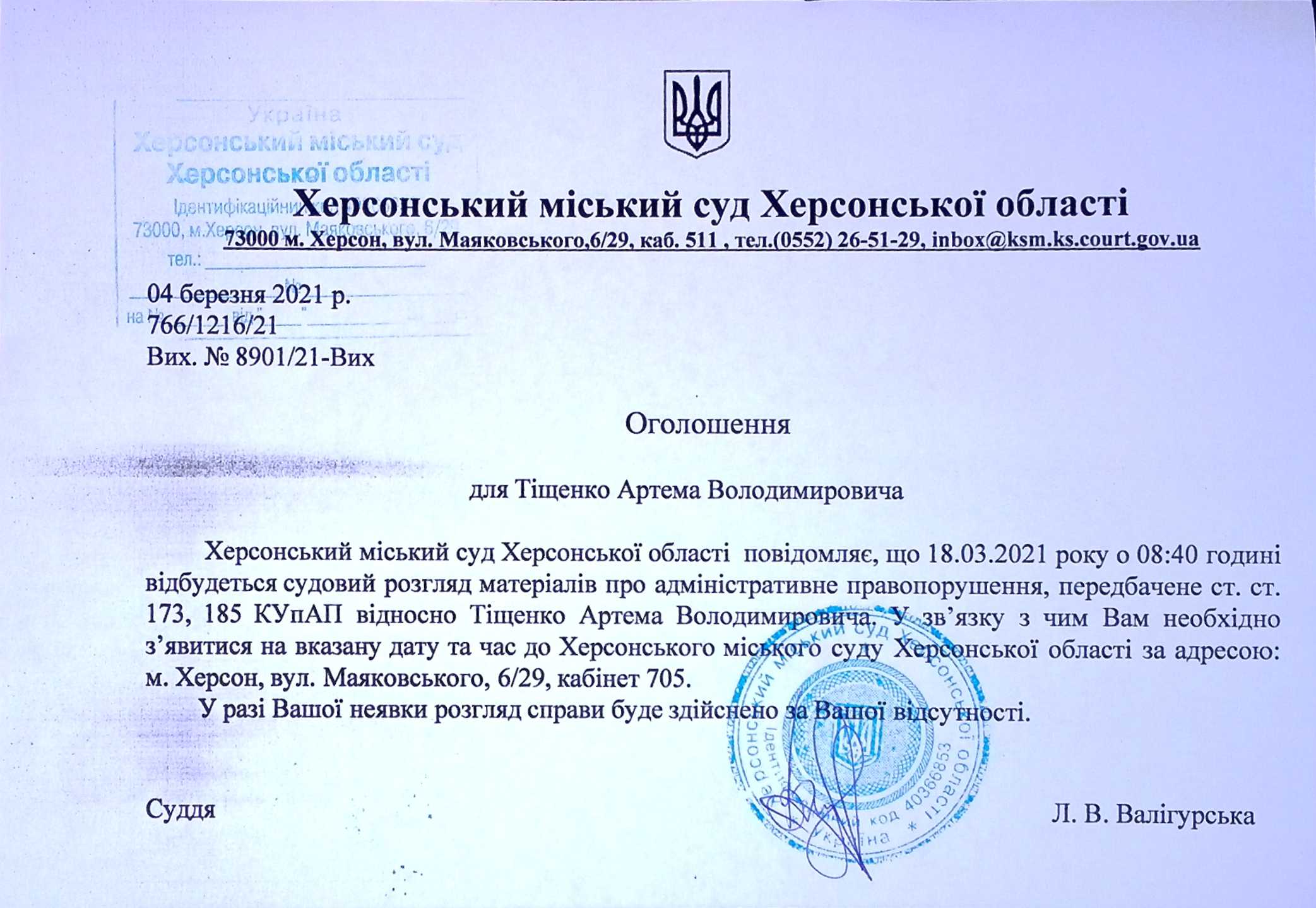ОГОЛОШЕННЯ для Тіщенко Артема Володимировича