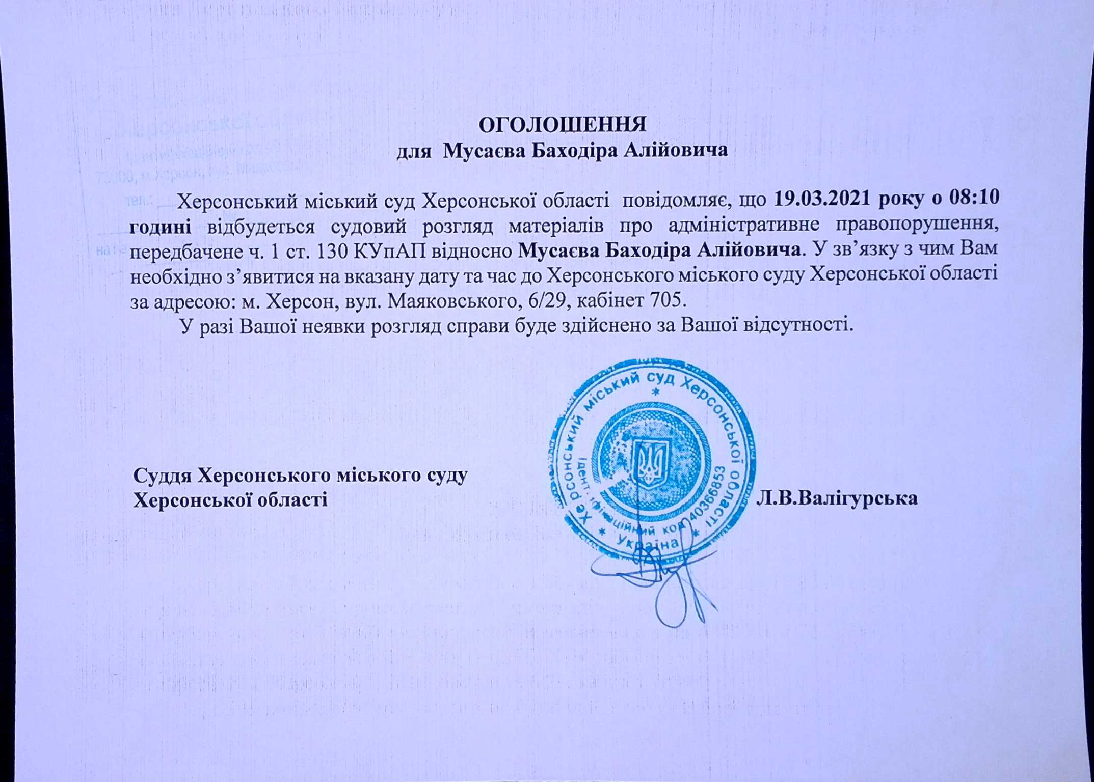ОГОЛОШЕННЯ для Мусаєва Баходіра Алійовича