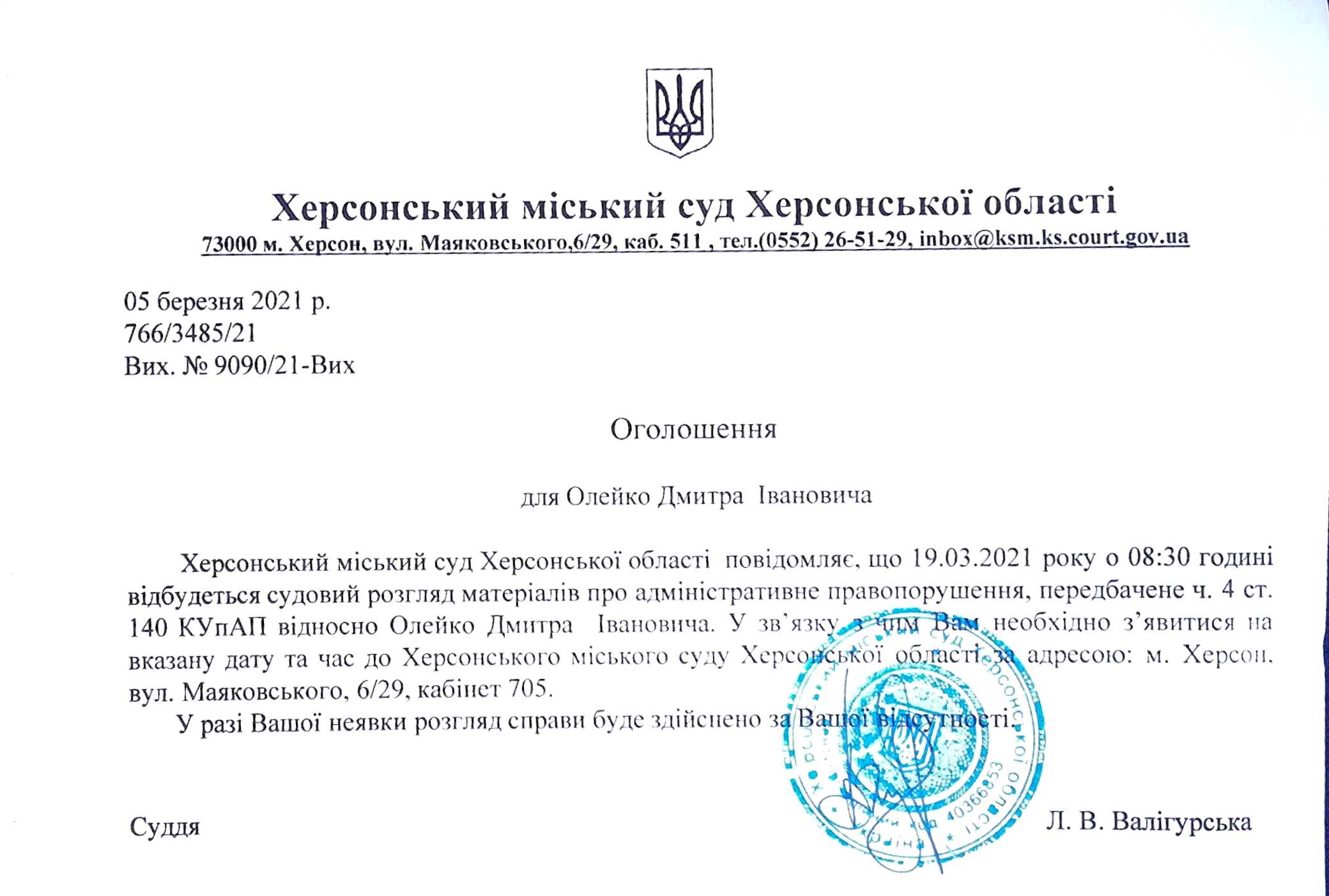ОГОЛОШЕННЯ ПРО ВИКЛИК ДО СУДУ