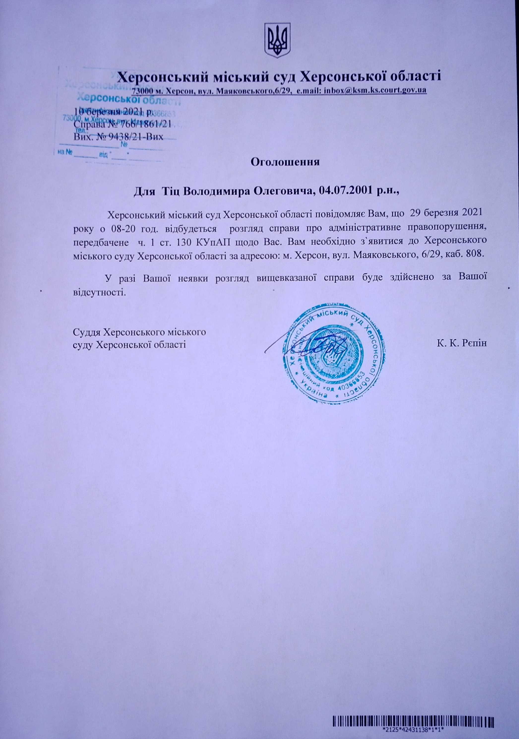 ОГОЛОШЕННЯ для Тіц Володимира Олеговича