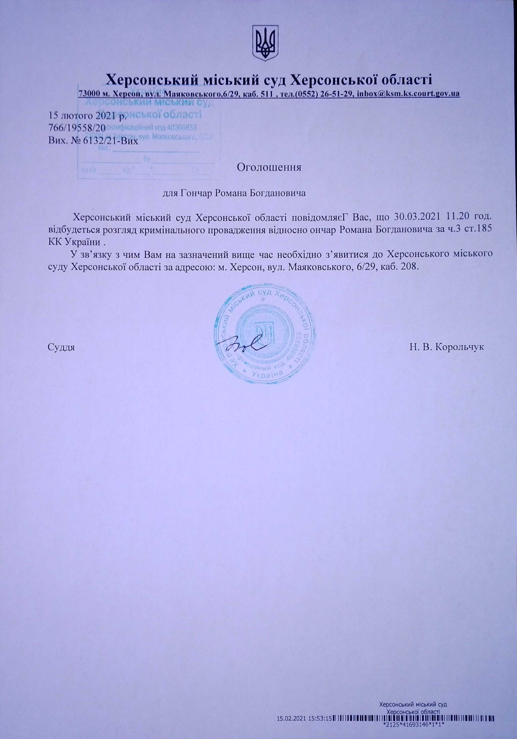ОГОЛОШЕННЯ ПРО ВИКЛИК ДО СУДУ