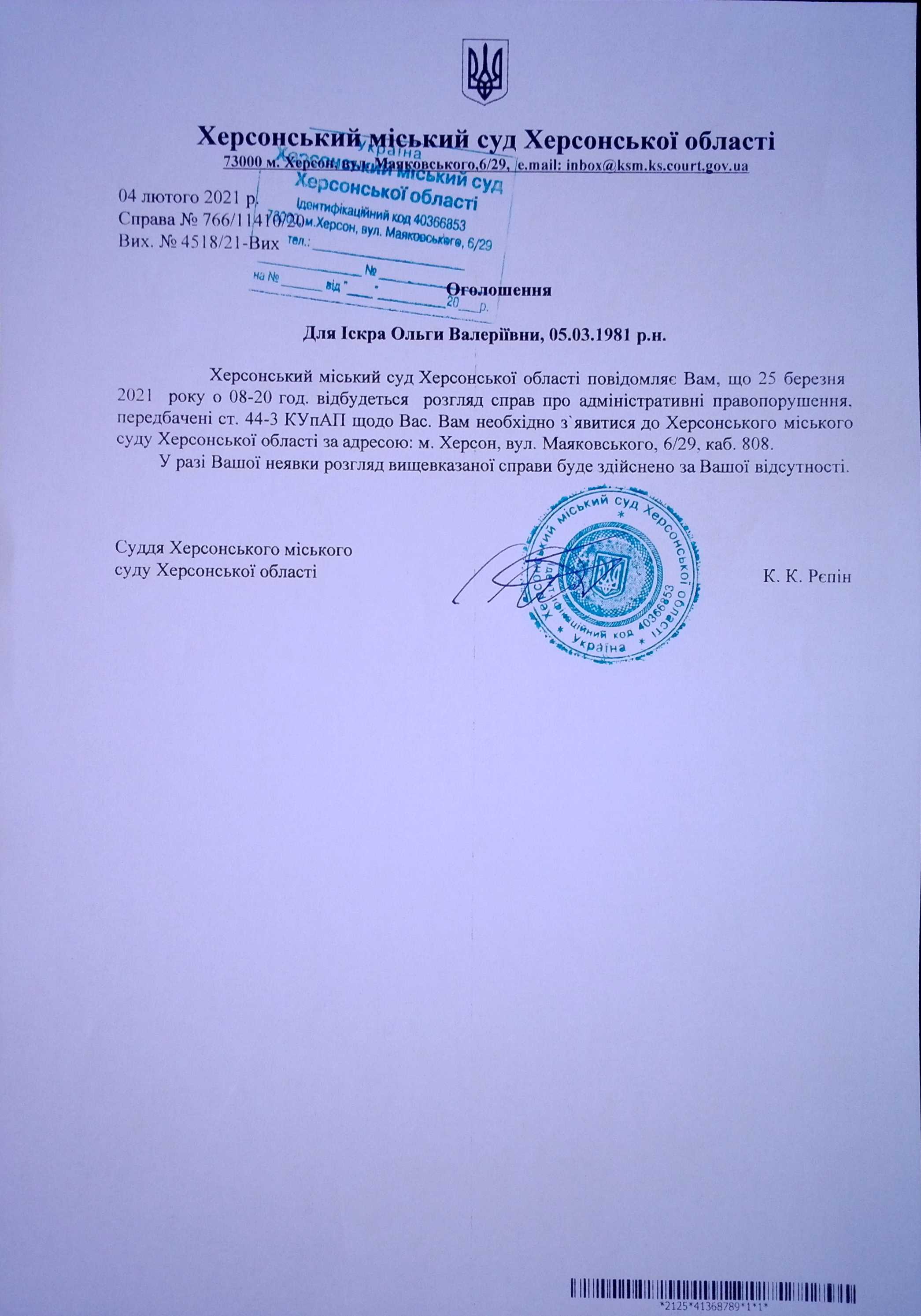 ОГОЛОШЕННЯ для Іскра Ольги Валеріївни