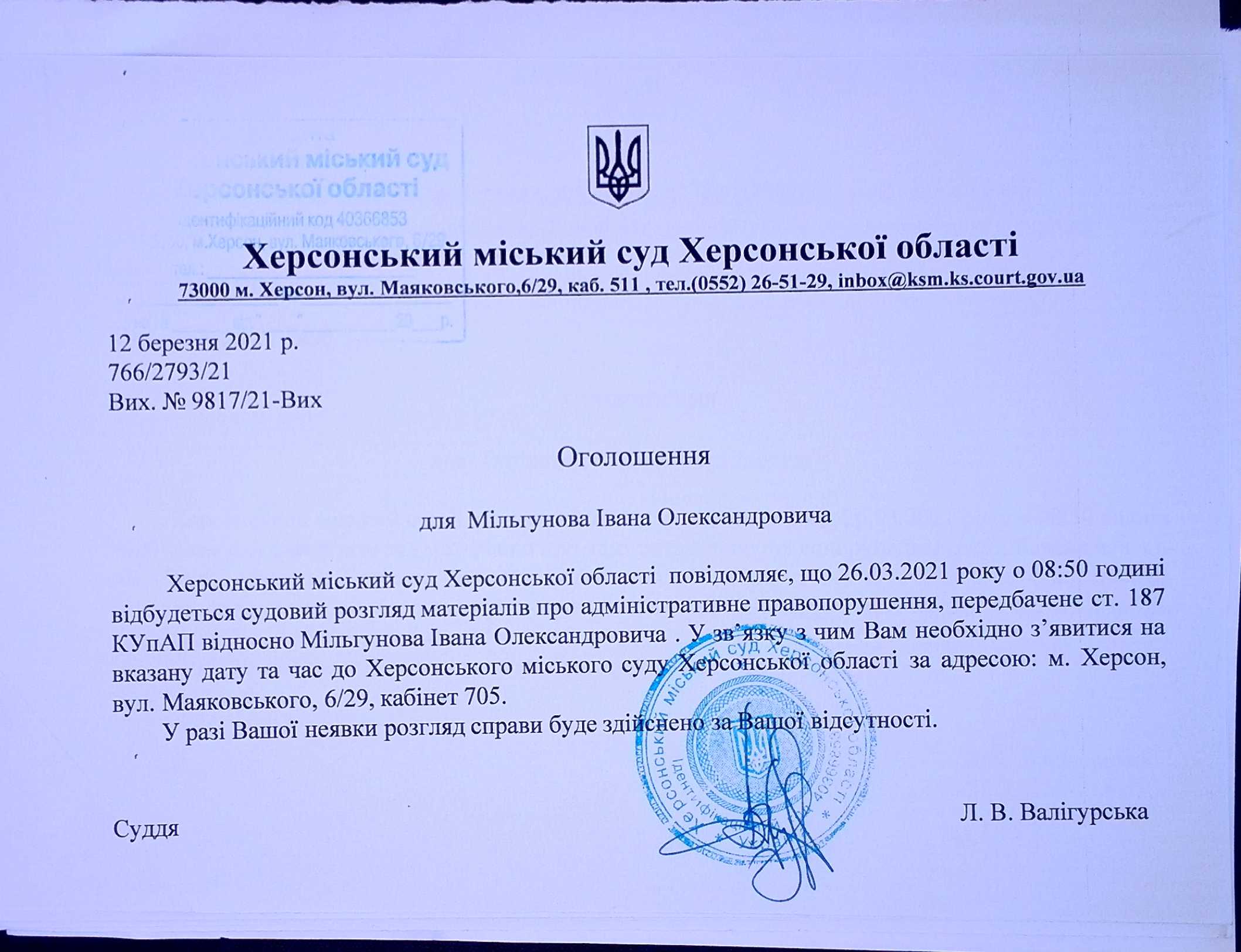 ОГОЛОШЕННЯ для Мільгунова Івана Олександровича